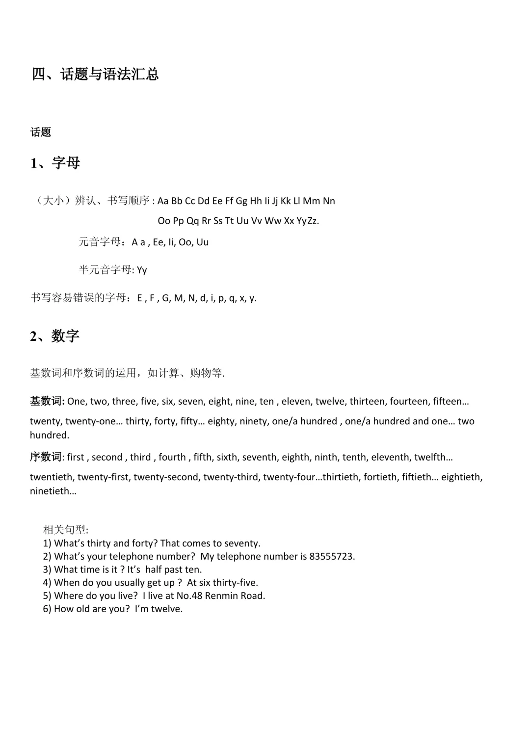 字母、数字、颜色、时间、食品、服装、文具、动物、身体、家庭、学校、社交礼仪、国家城市、天气、节日、方位、正在发生的事、日常生活、计划打算、能力可能……小学英语所有话题一网打尽。