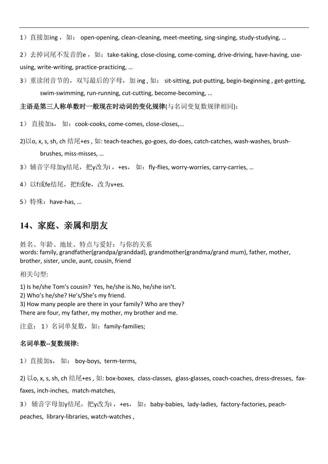 - 辅音 + y:变 y 为 i 加 es:family → families