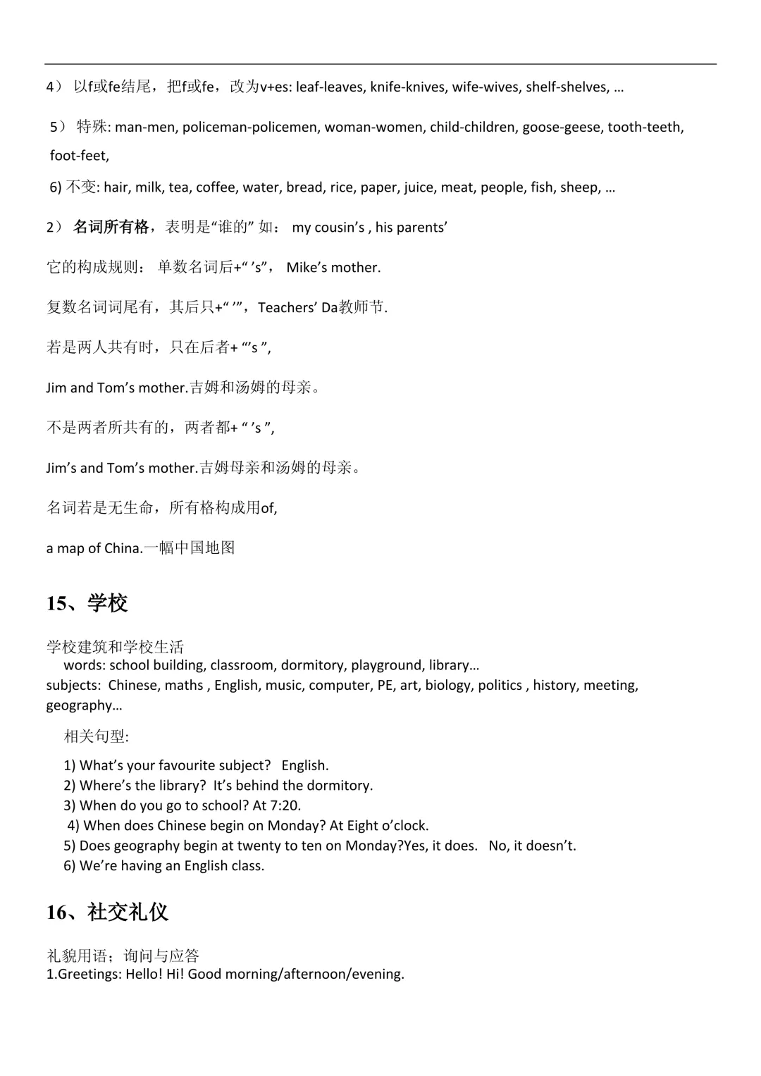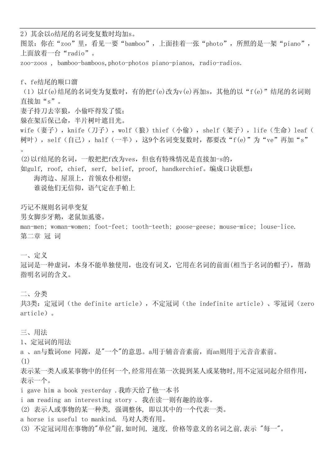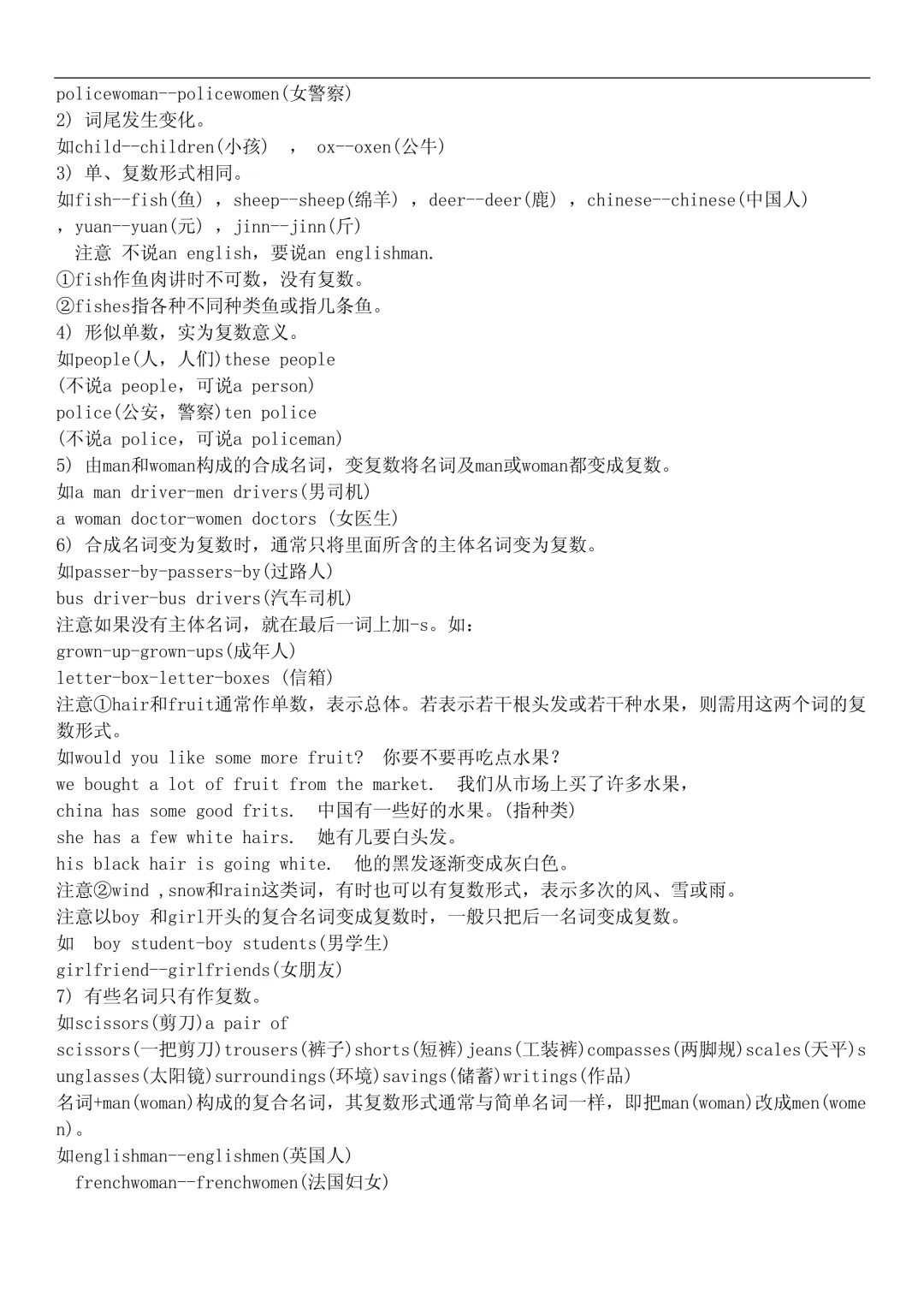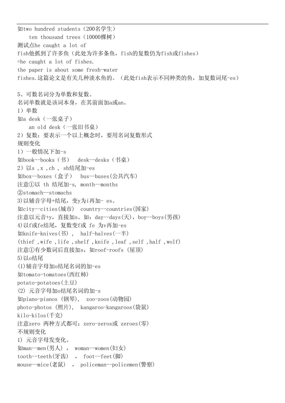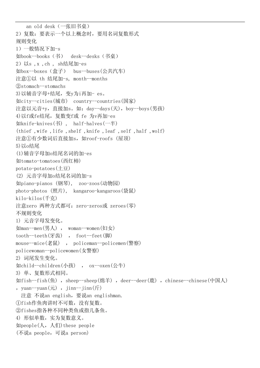 2. 名词复数(规则 + 不规则)
