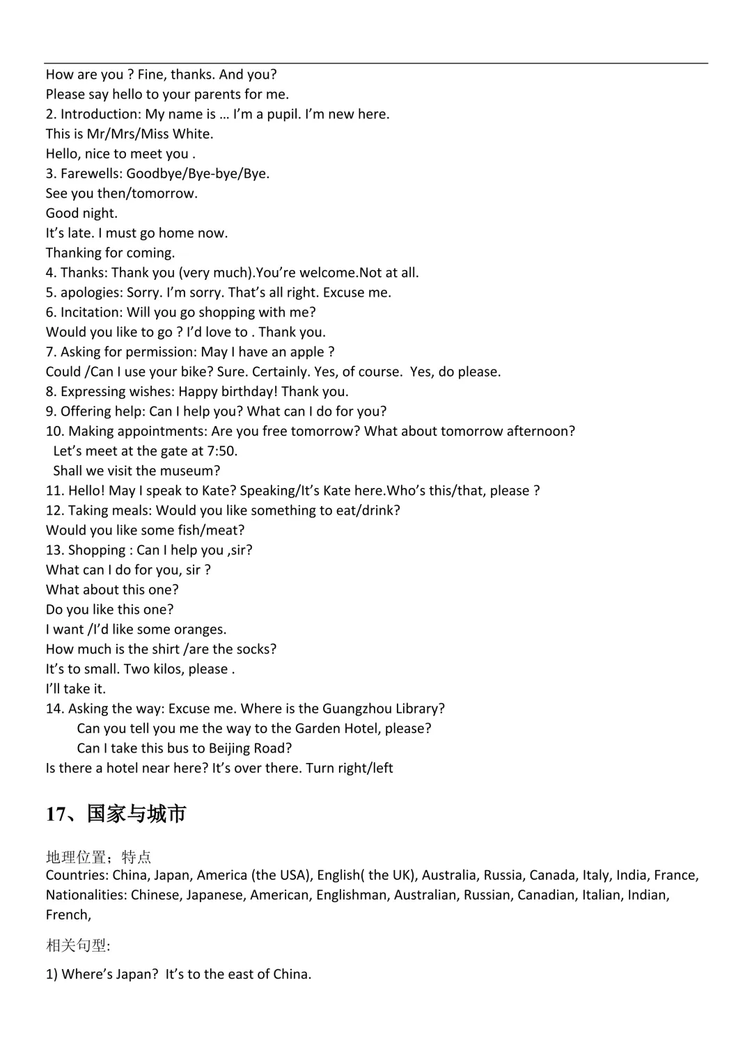 日常基础短语