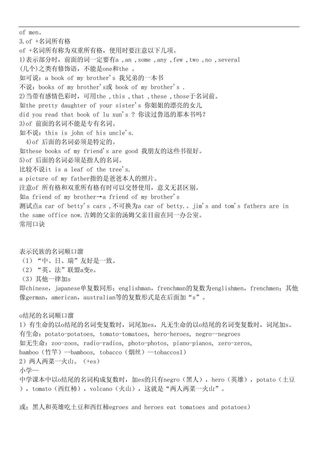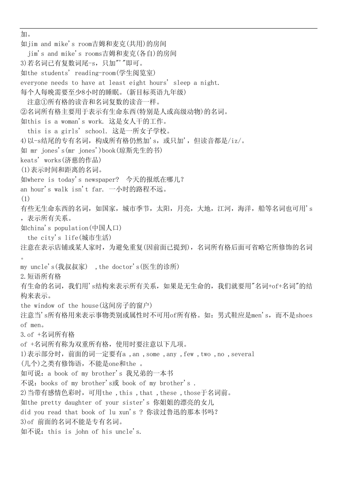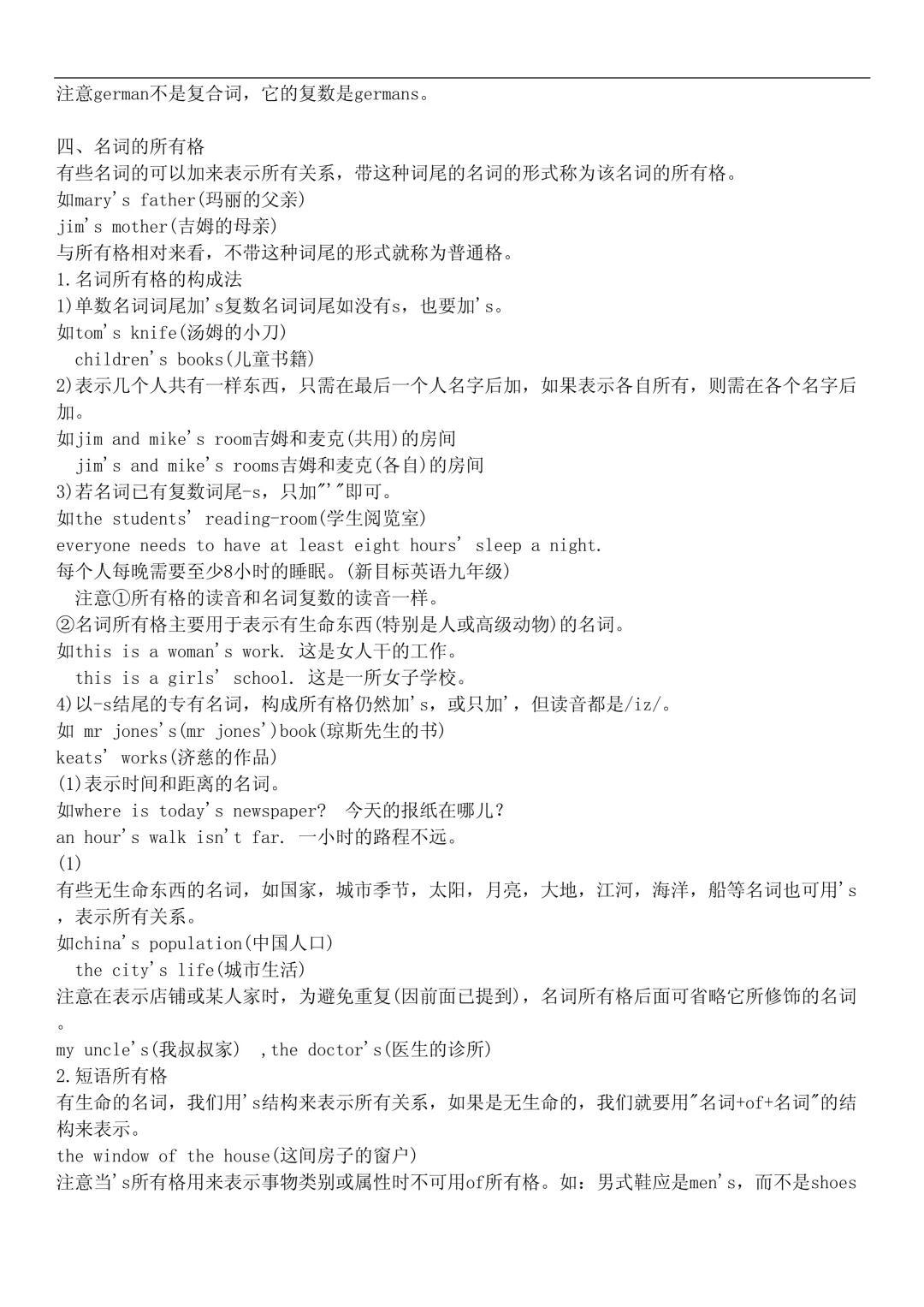 - 所有格:Tom’s book, children’s books