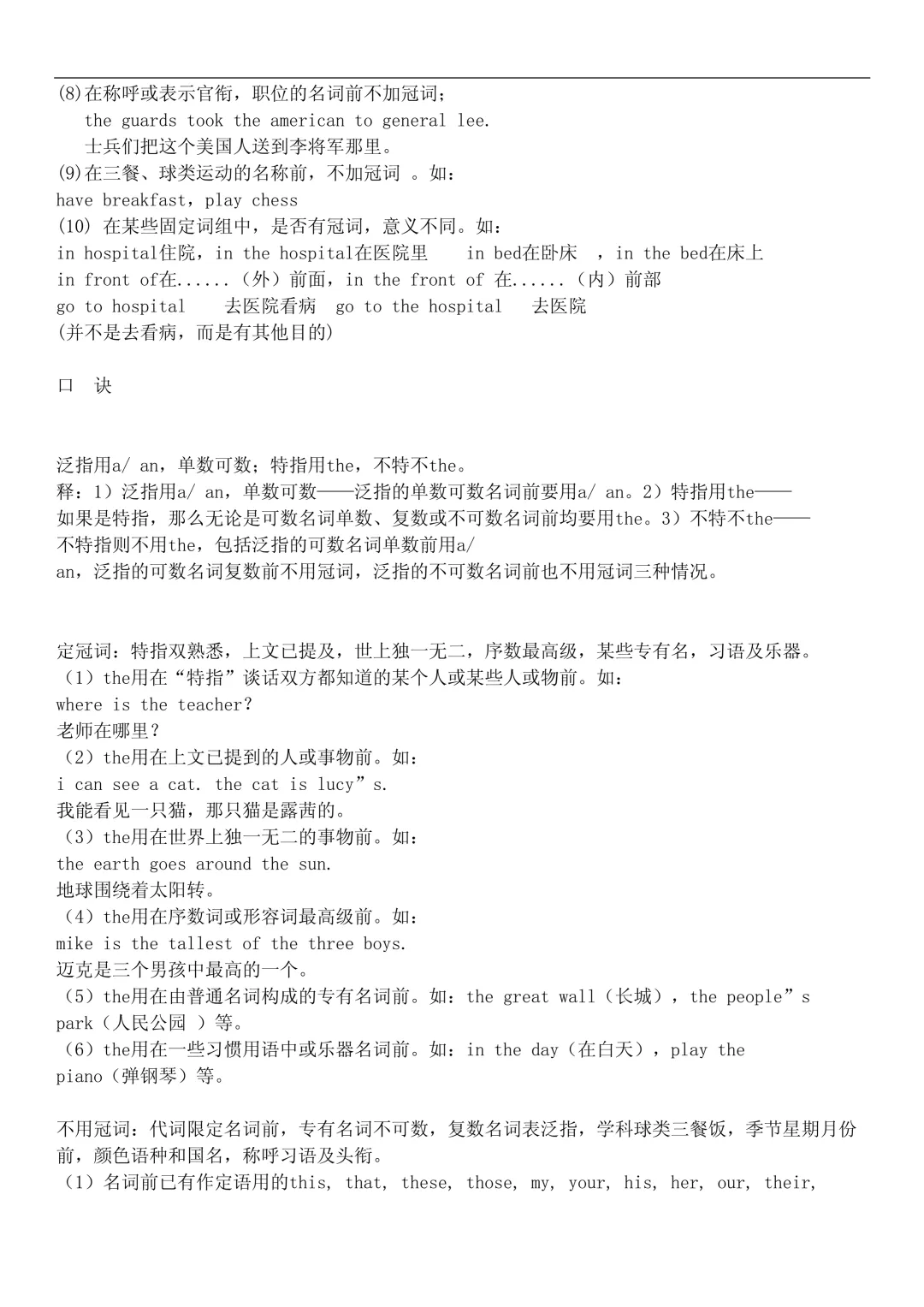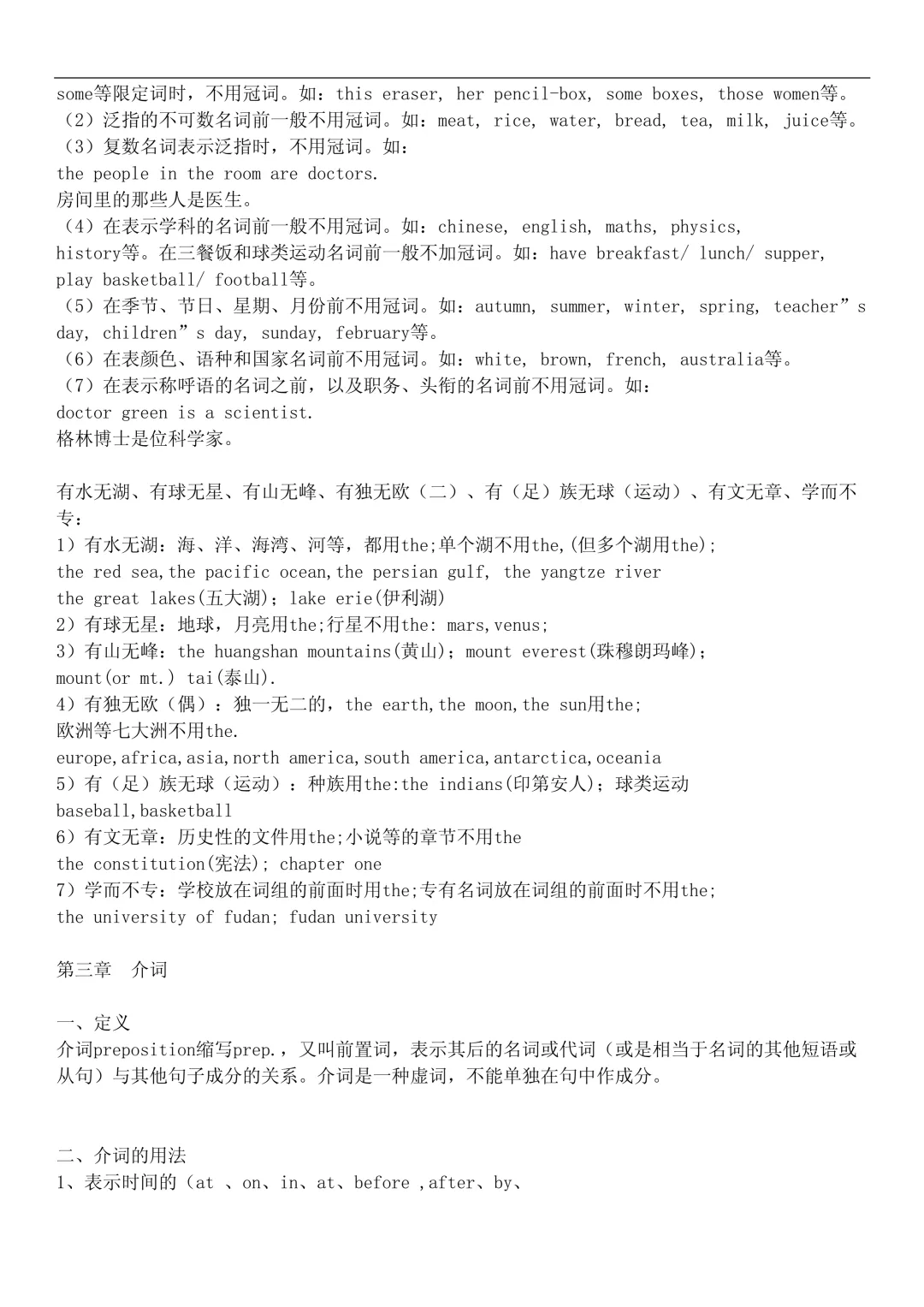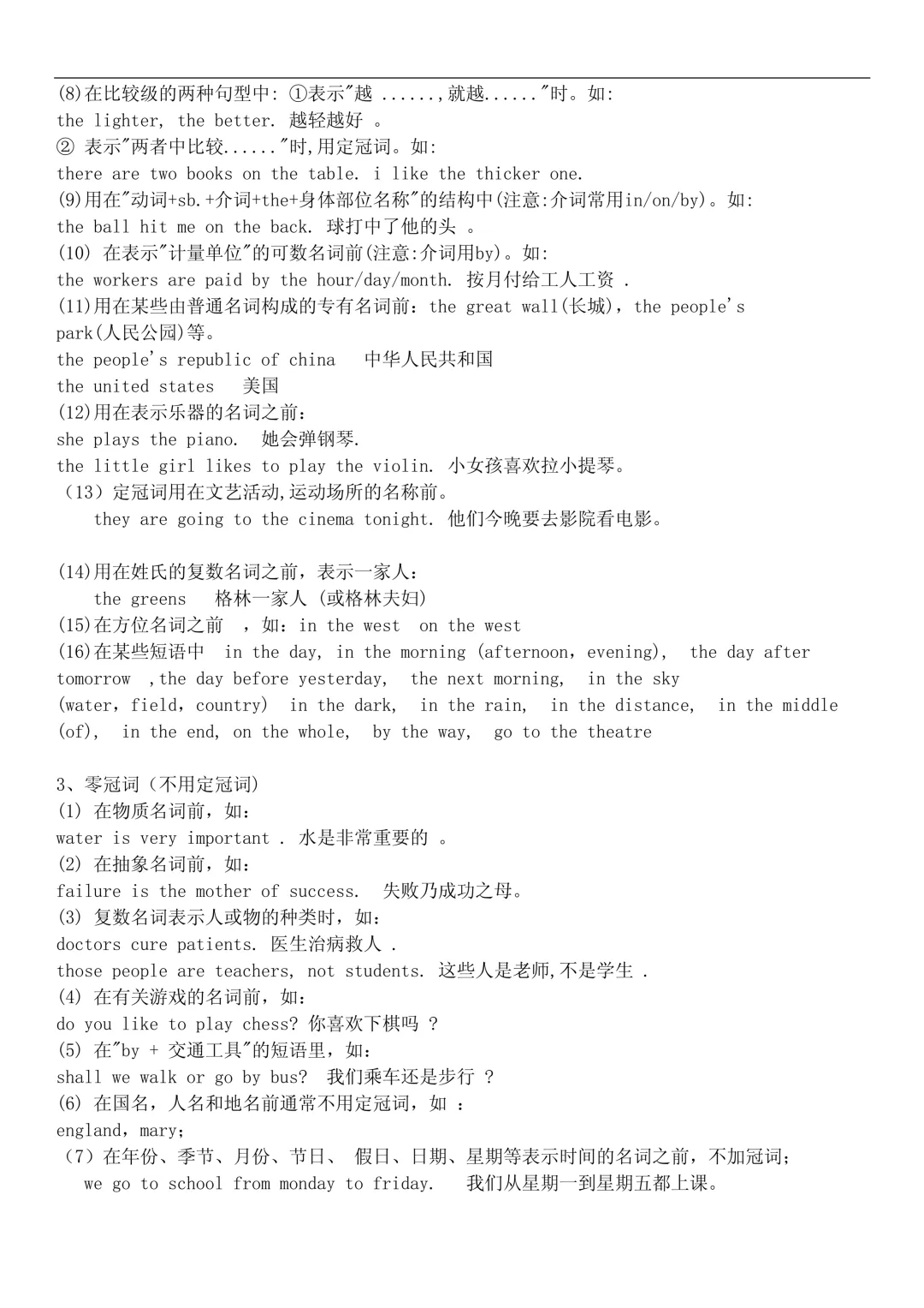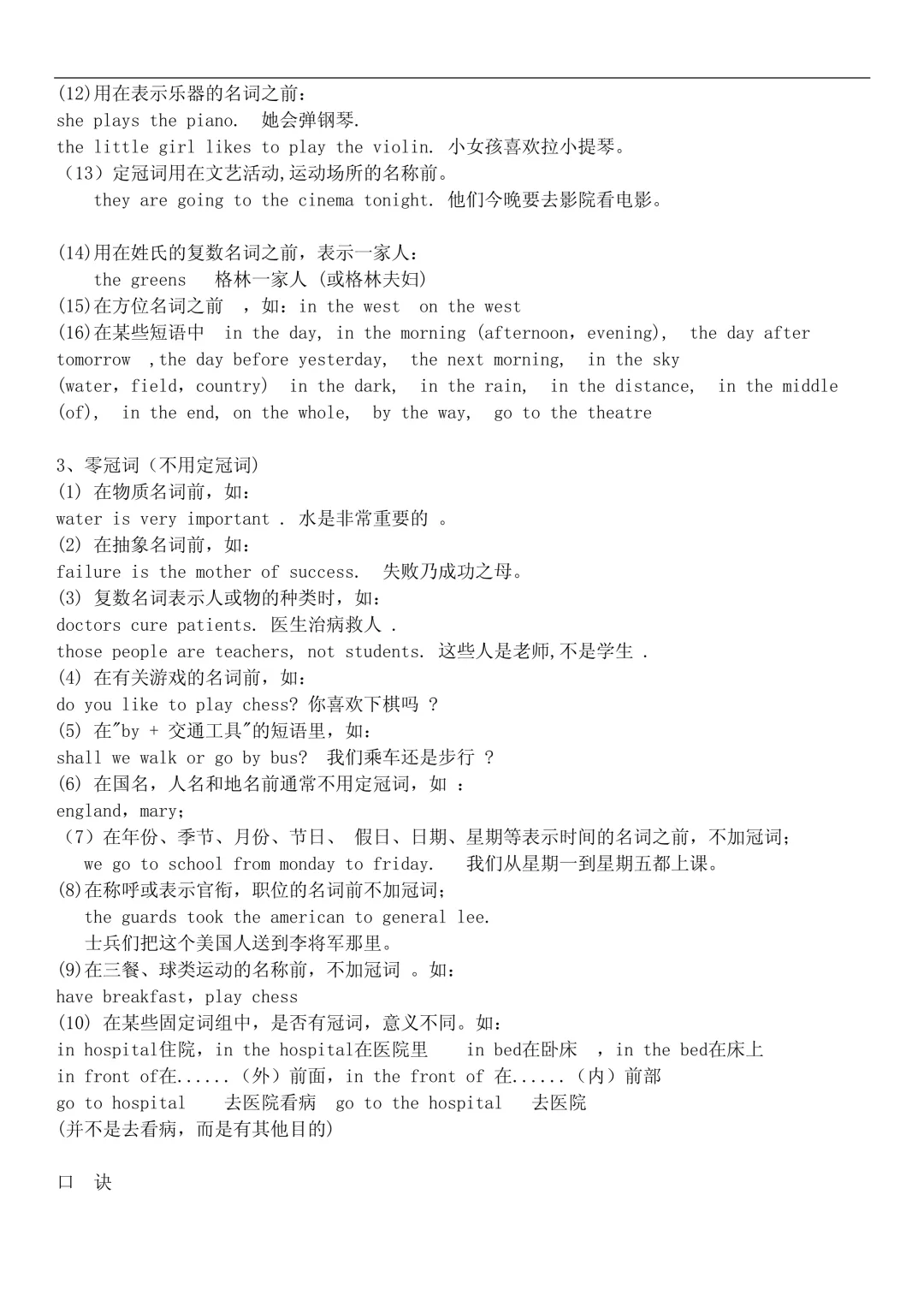- 三餐、球类不加冠词:have breakfast, play football