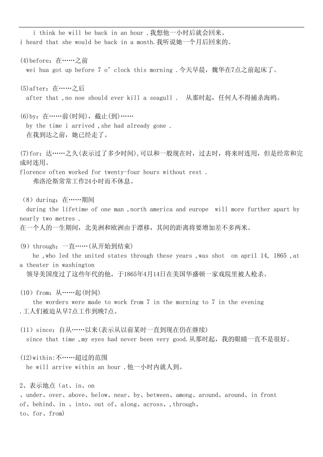 3. 介词(时间 + 地点)