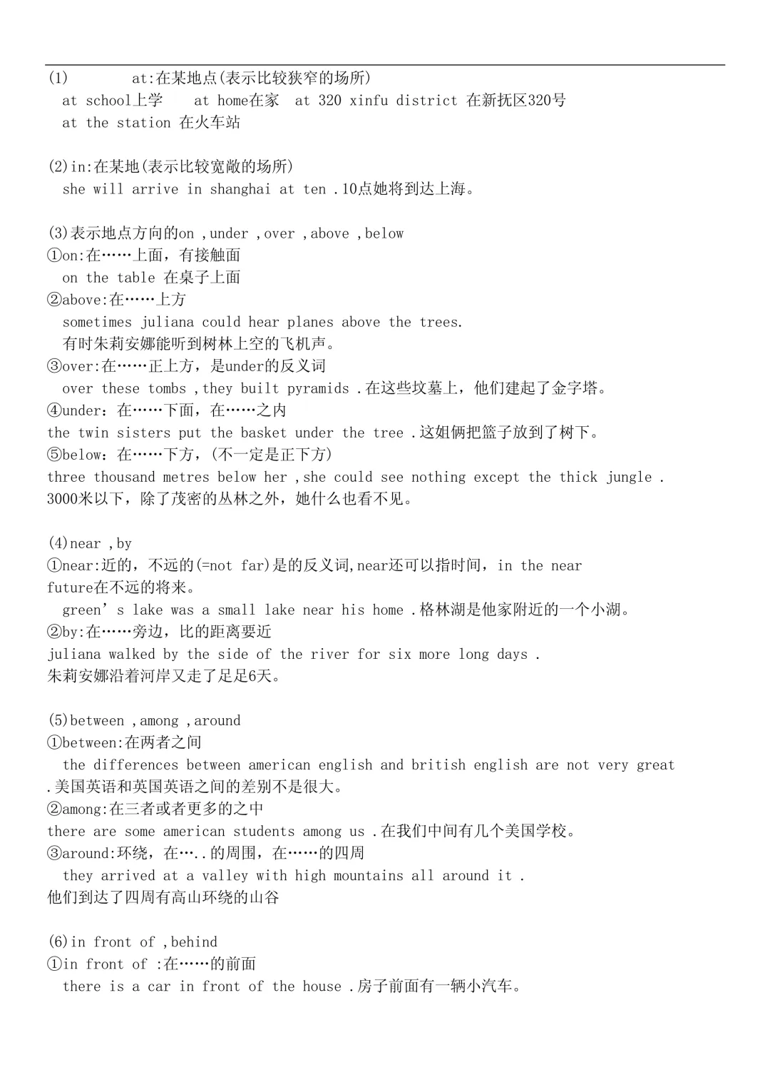 - 地点:in 大地点,at 小地点;on 在上面,under 在下面