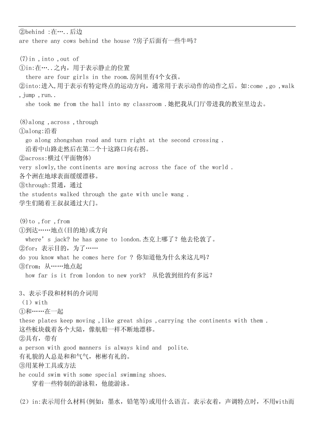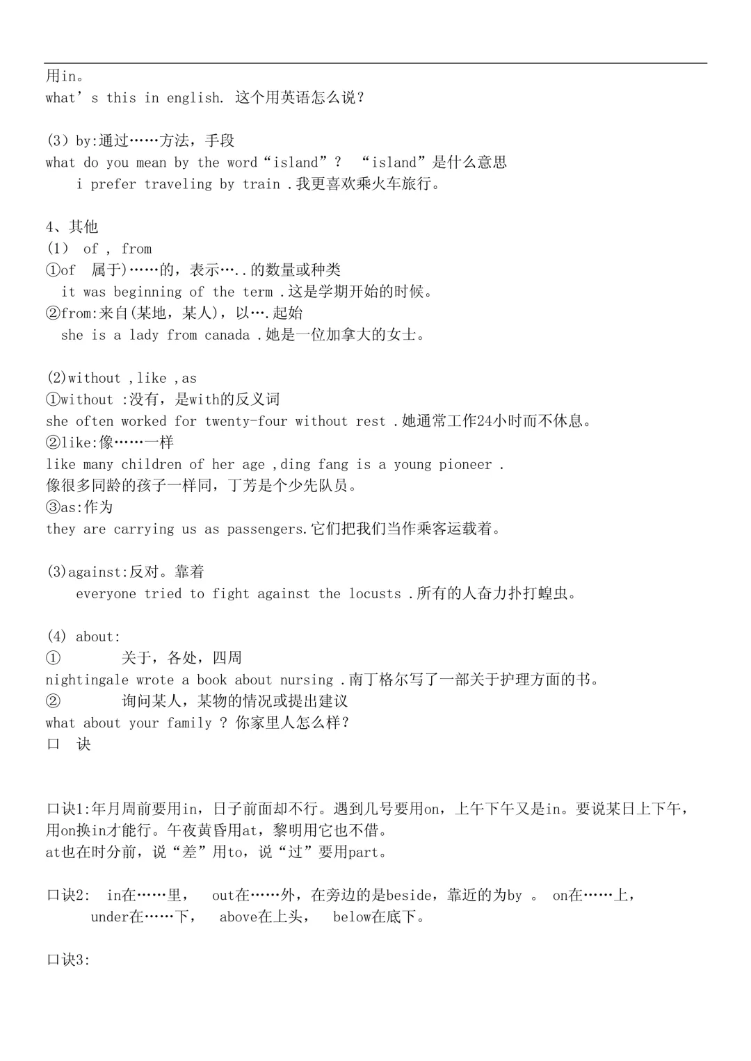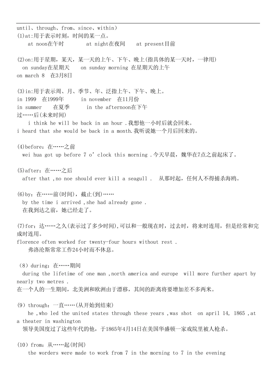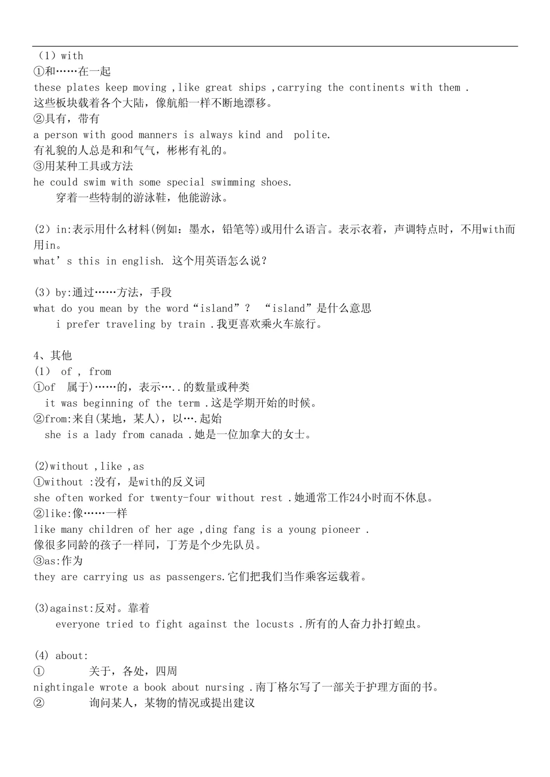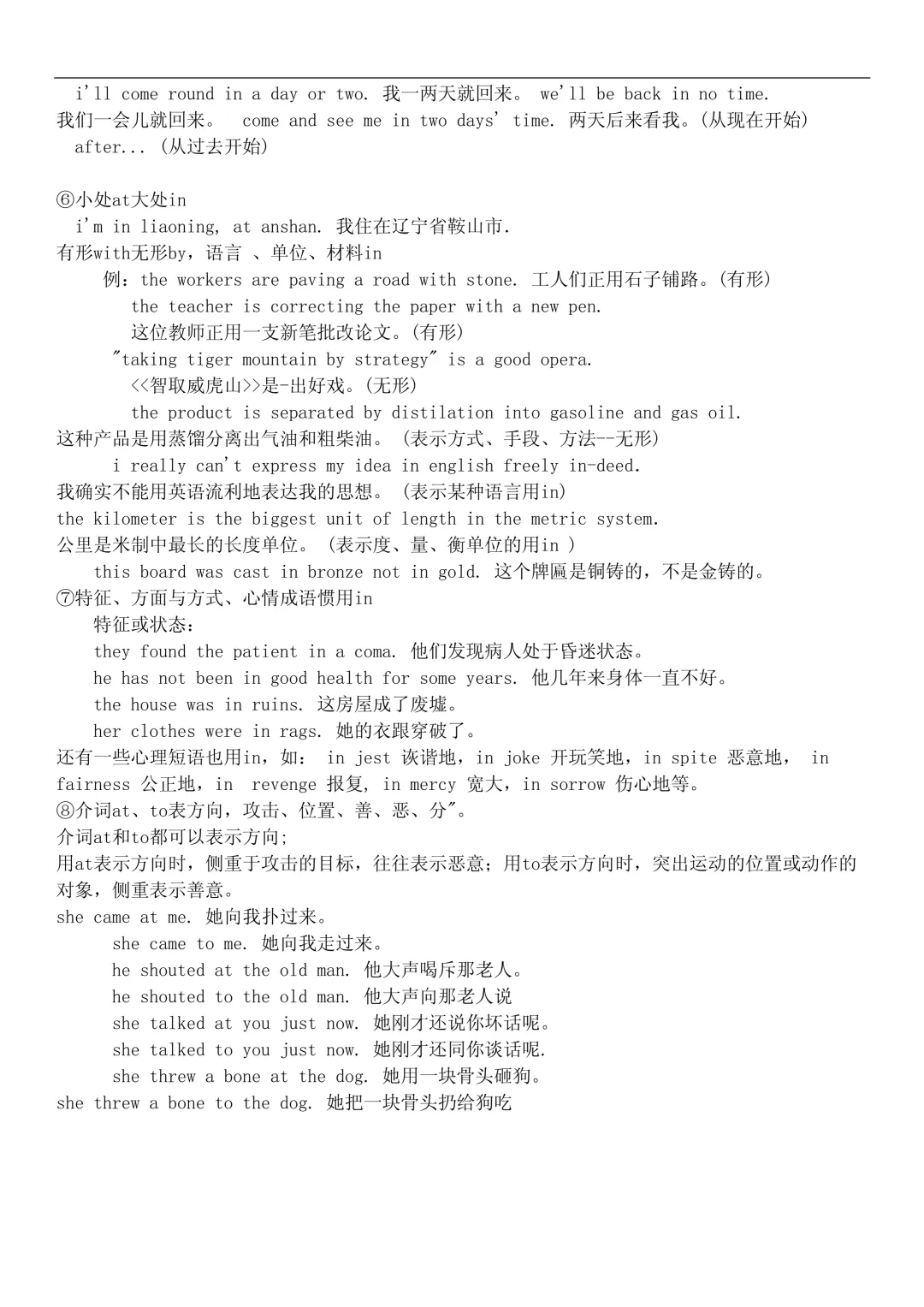 介词与固定搭配