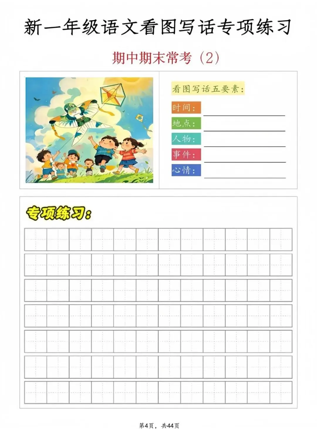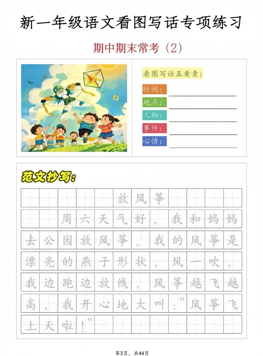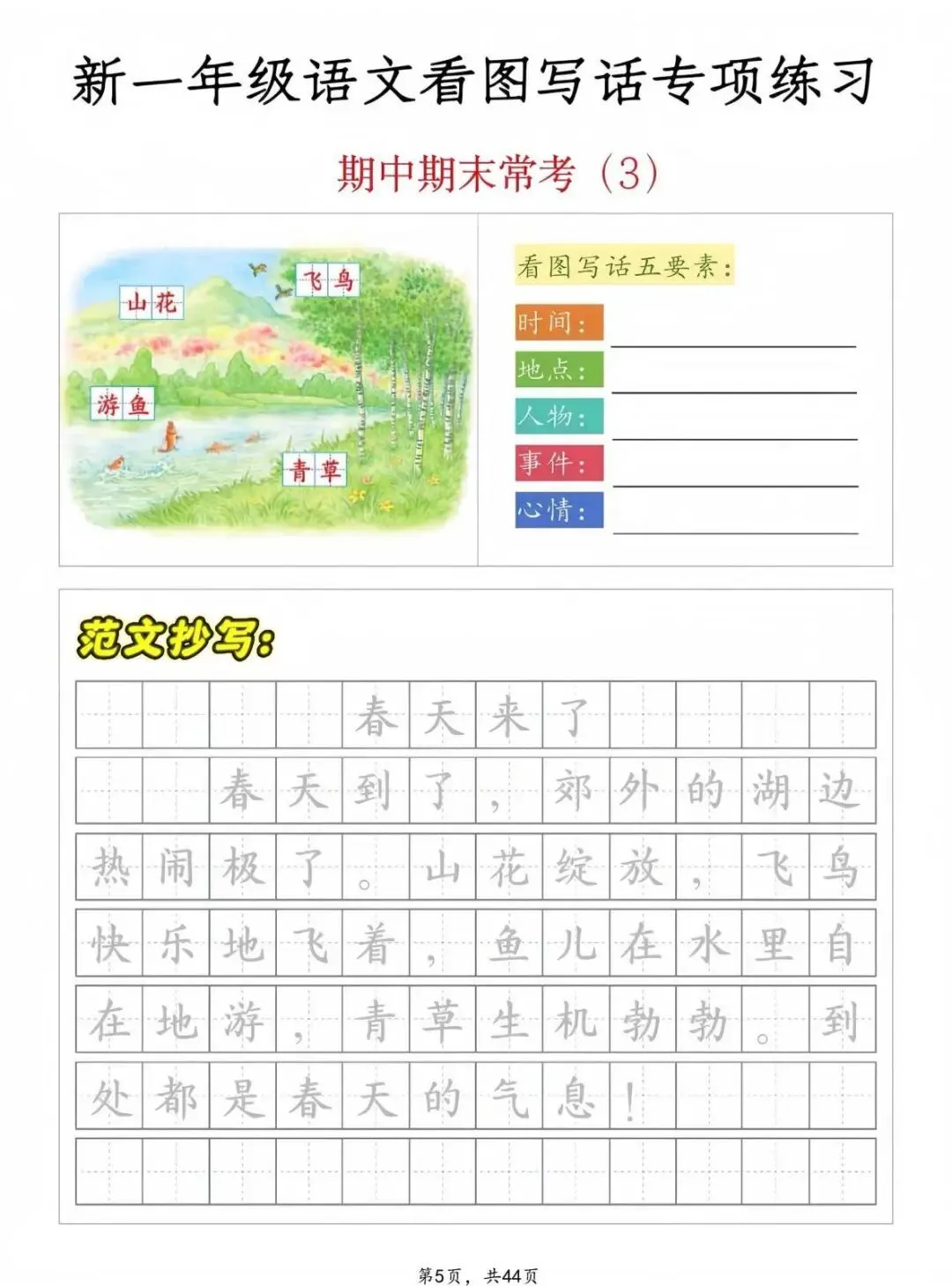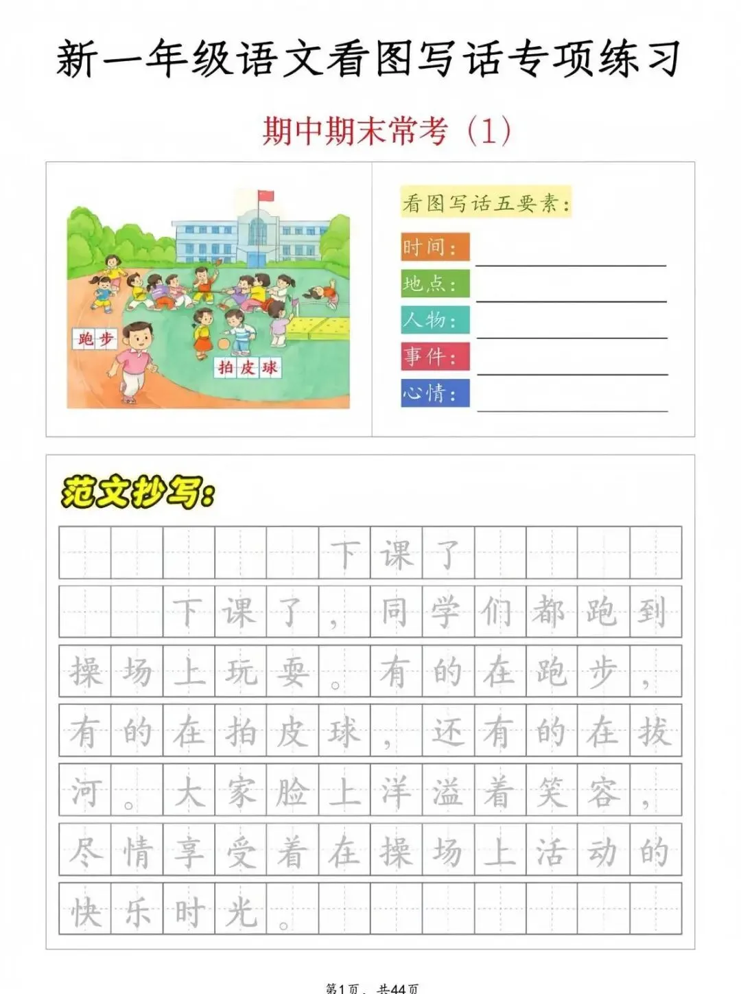 新一年级看图写话专项练习 22 篇(范文抄写+空白练习)44 页.pdf