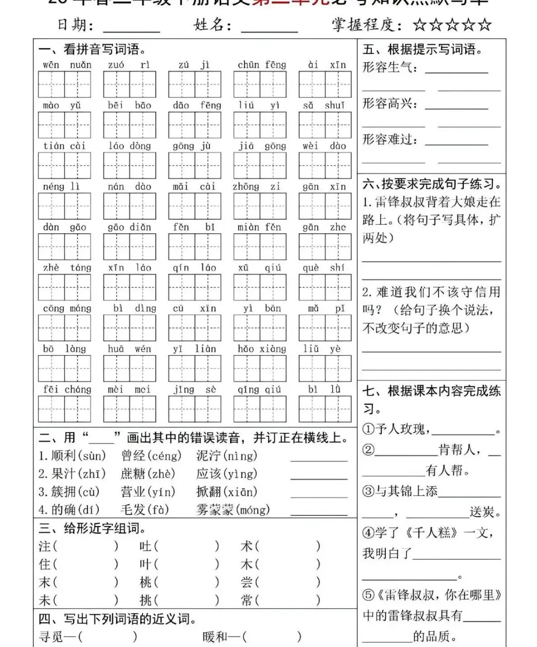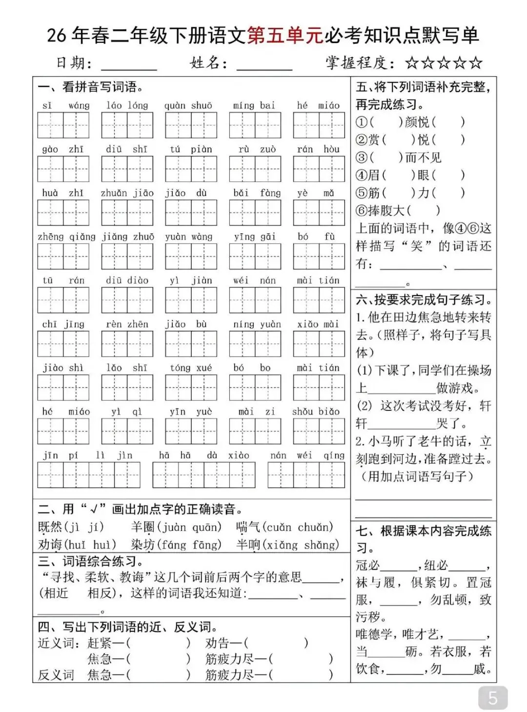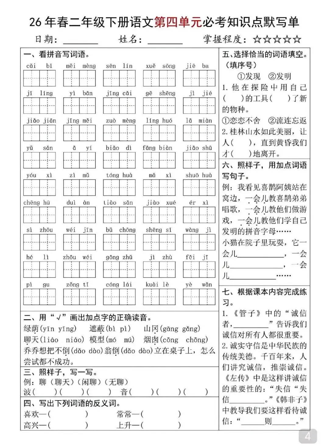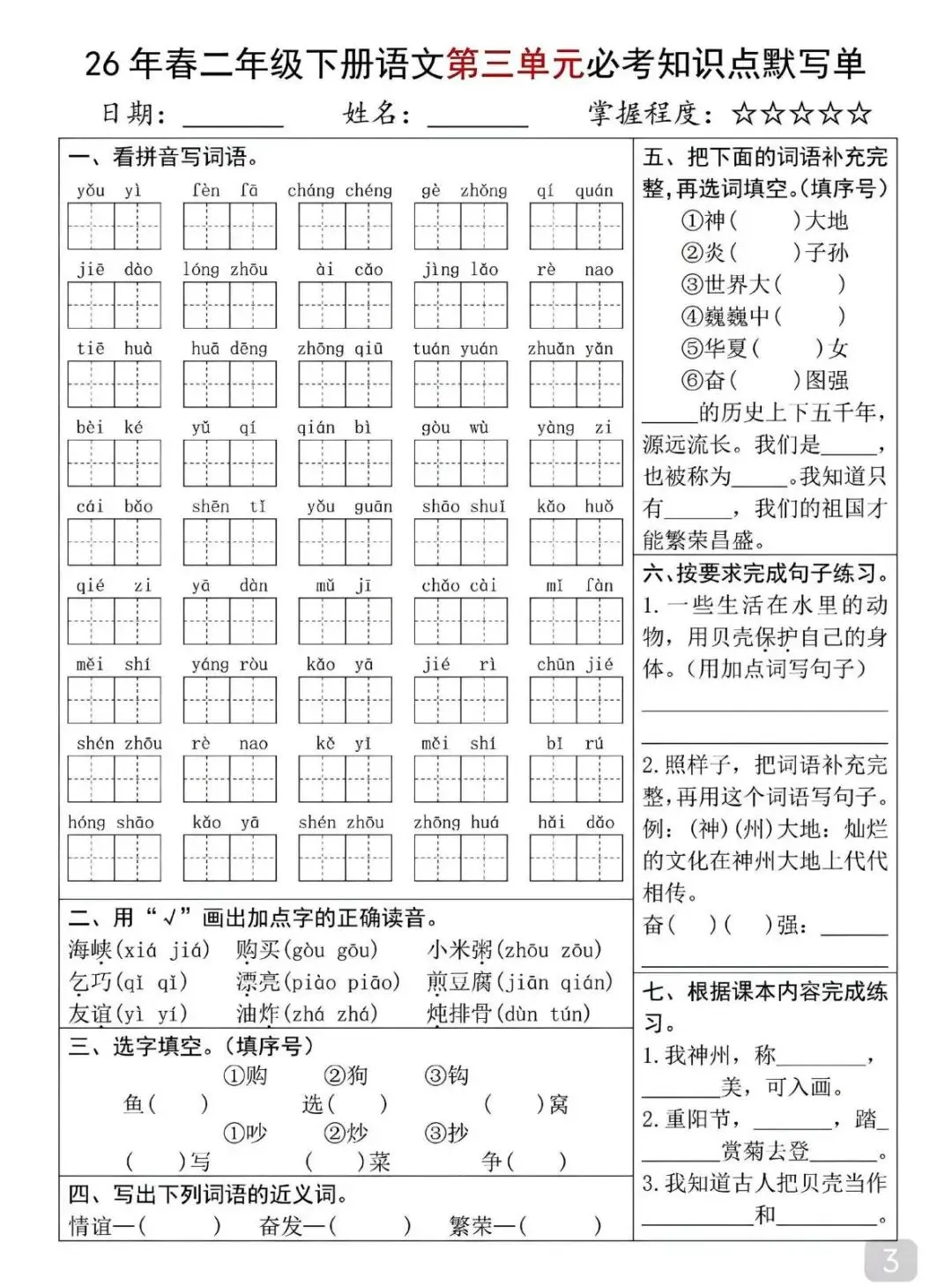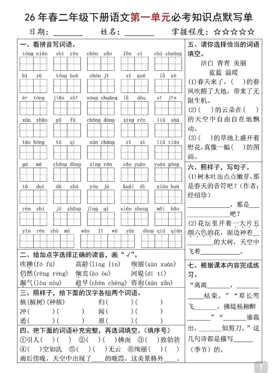26 春二下语文【1-8 单元必考知识默写单】.pdf