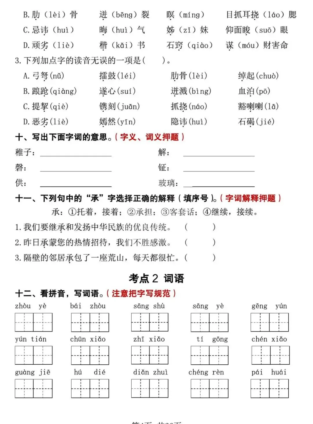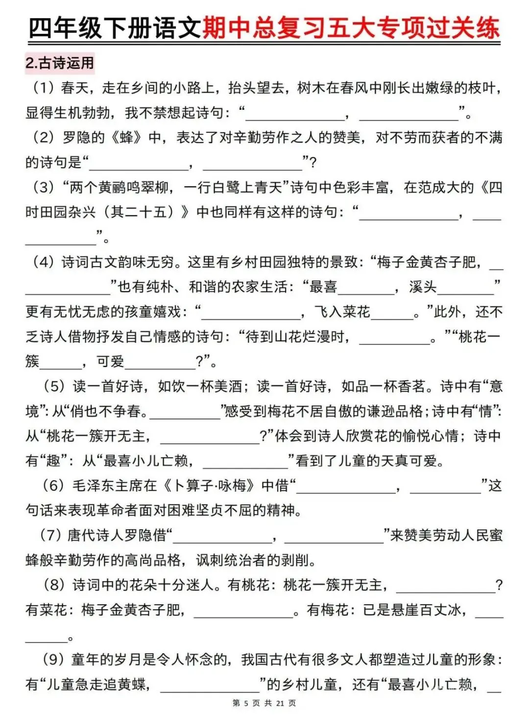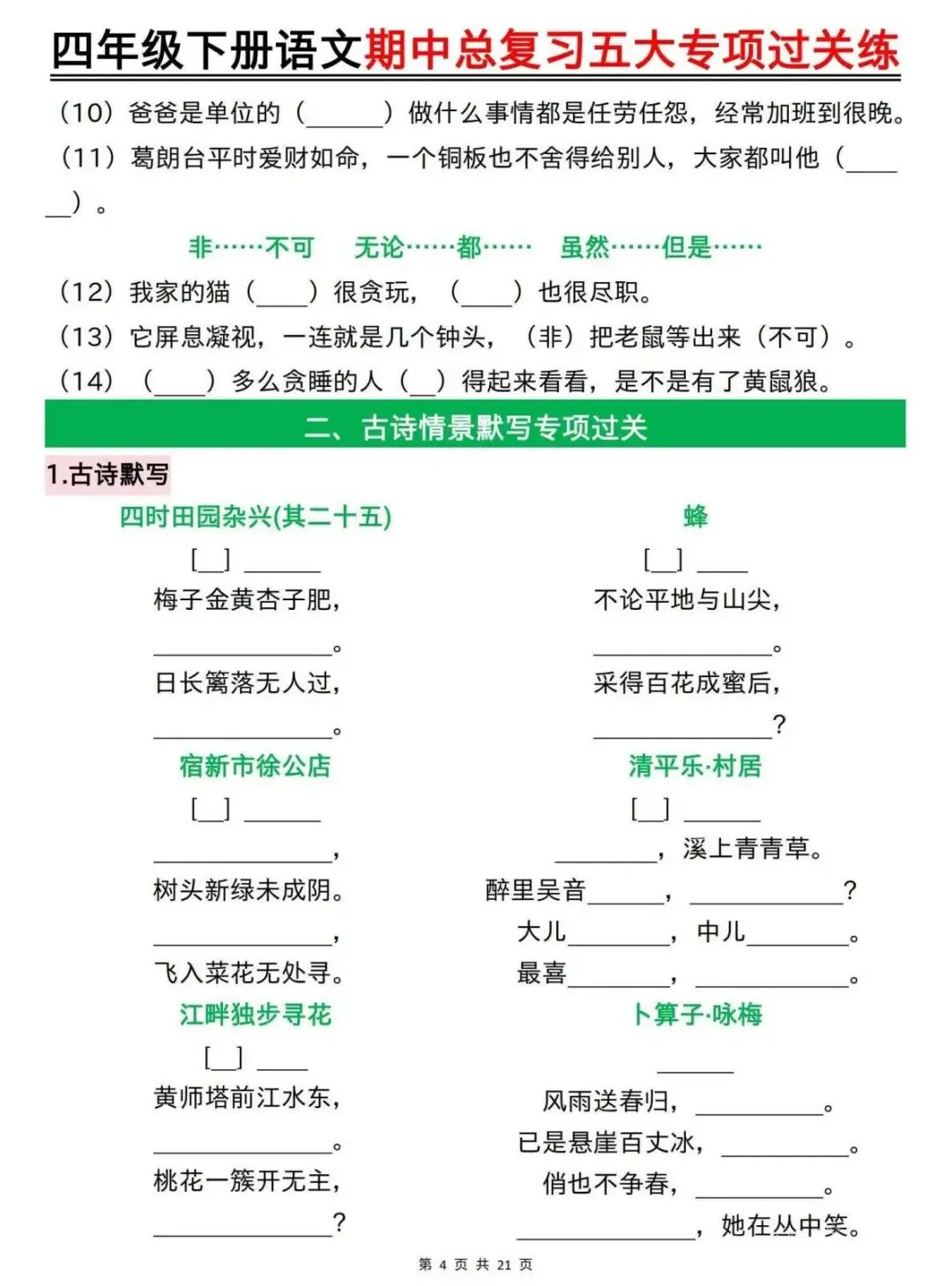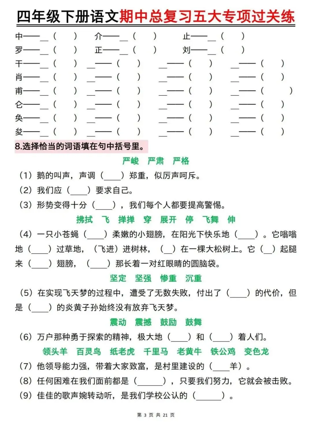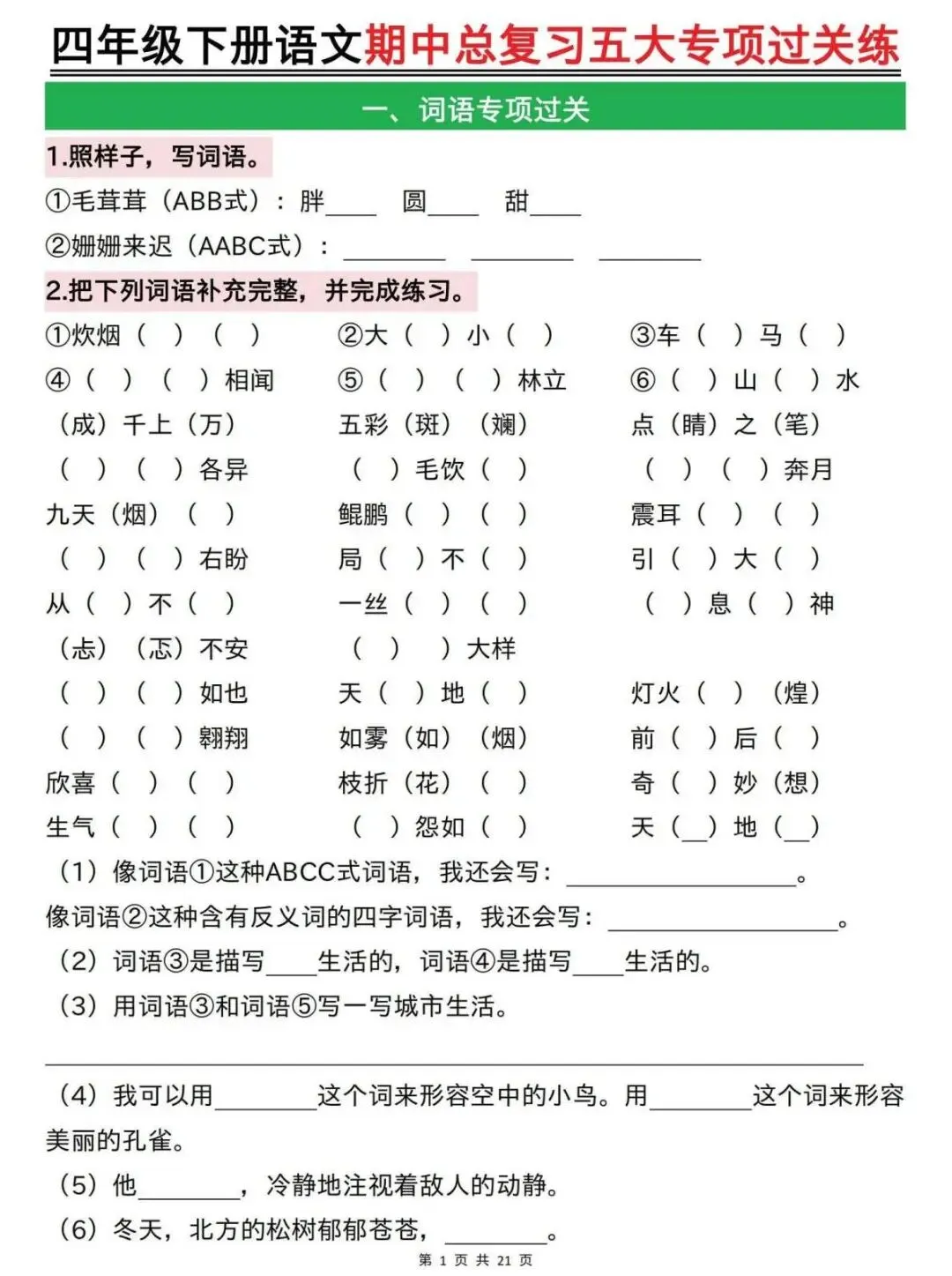 四下语文【期中总复习五大专项过关练(空白)】.pdf