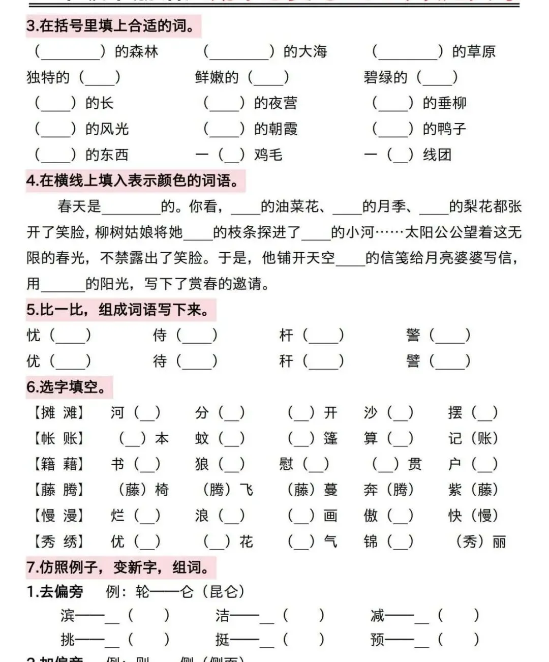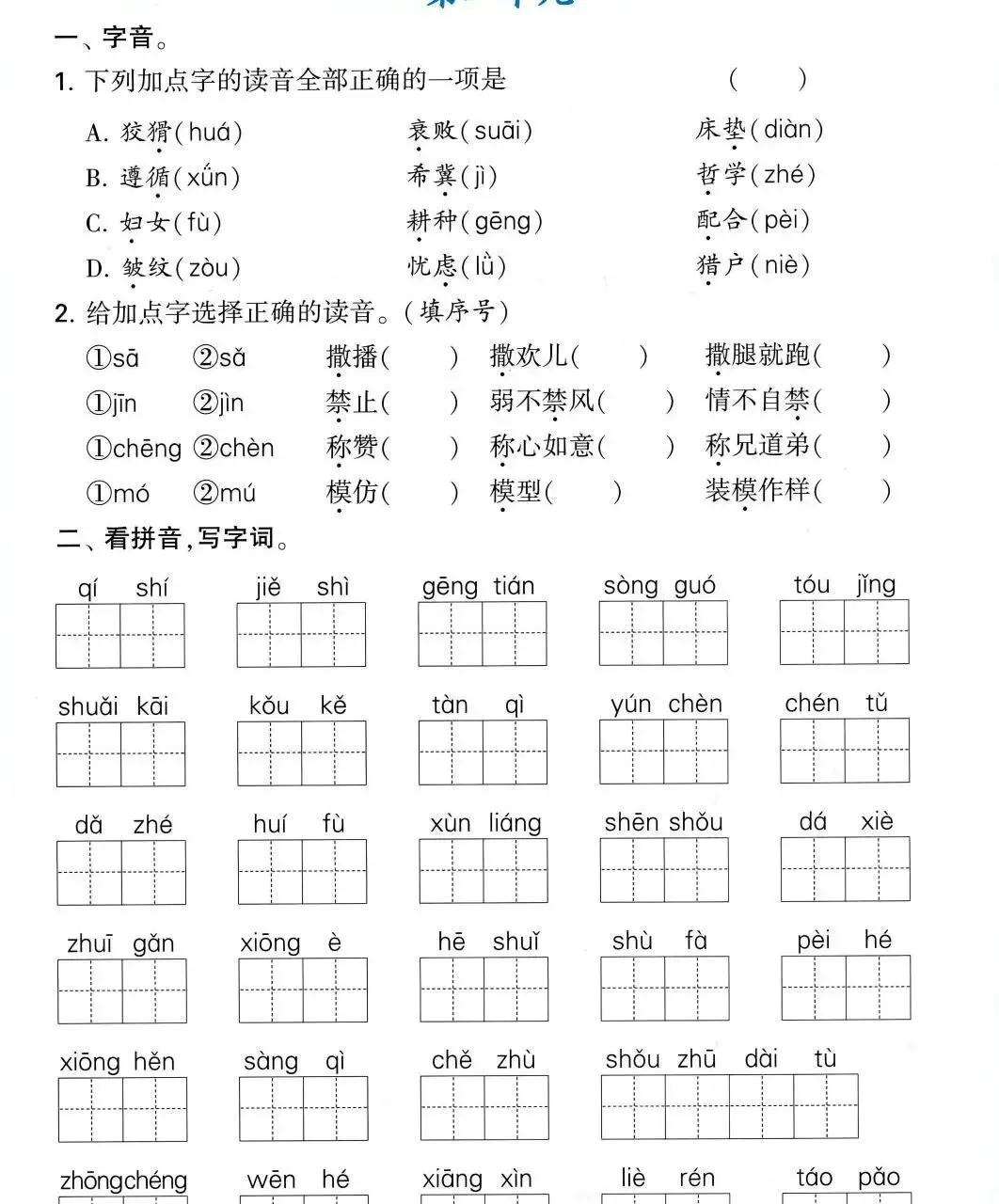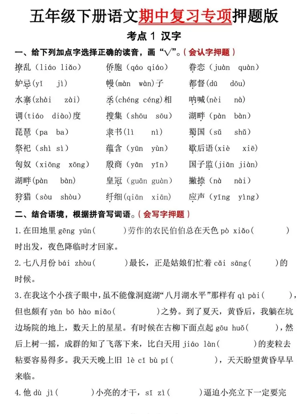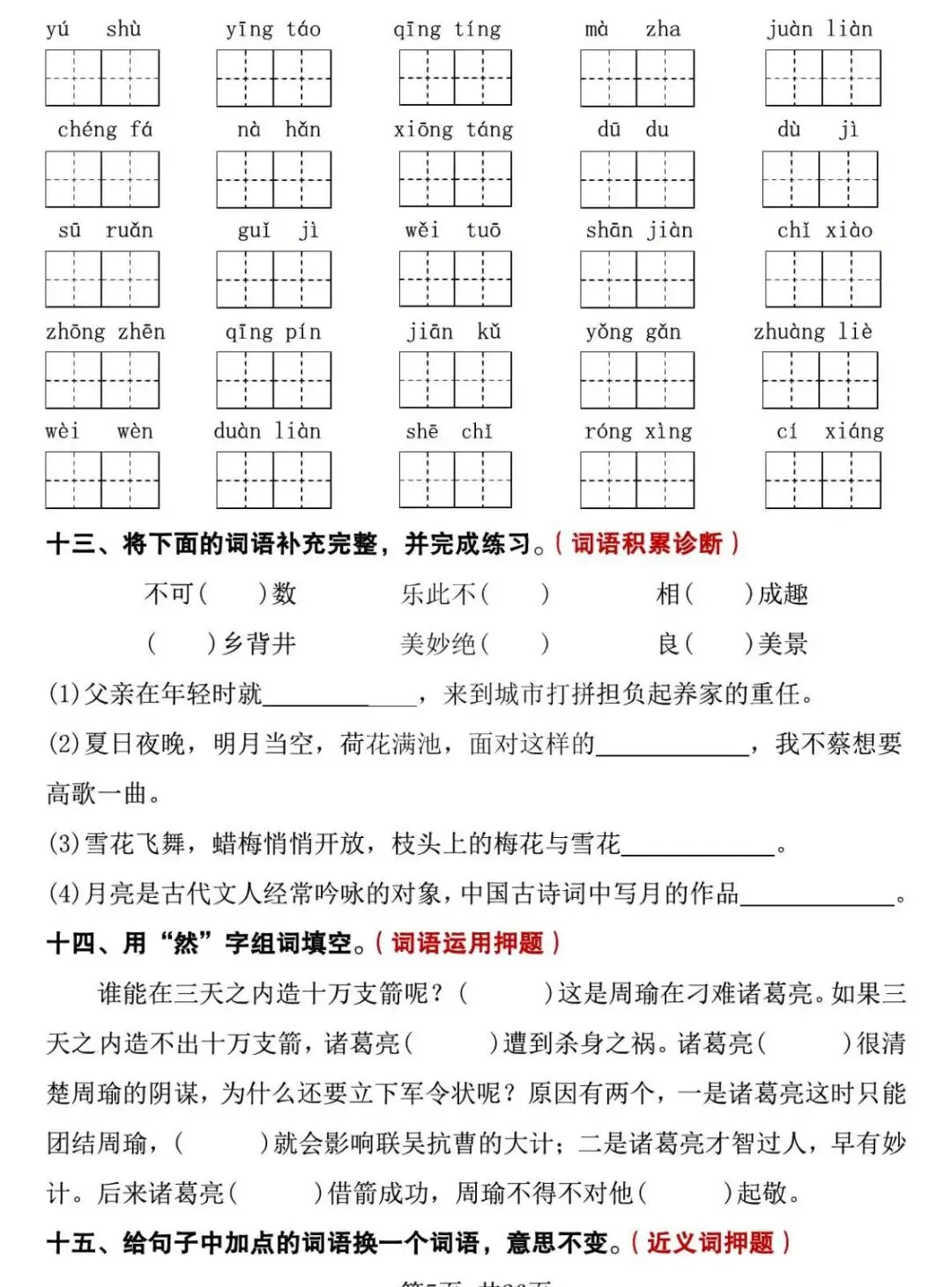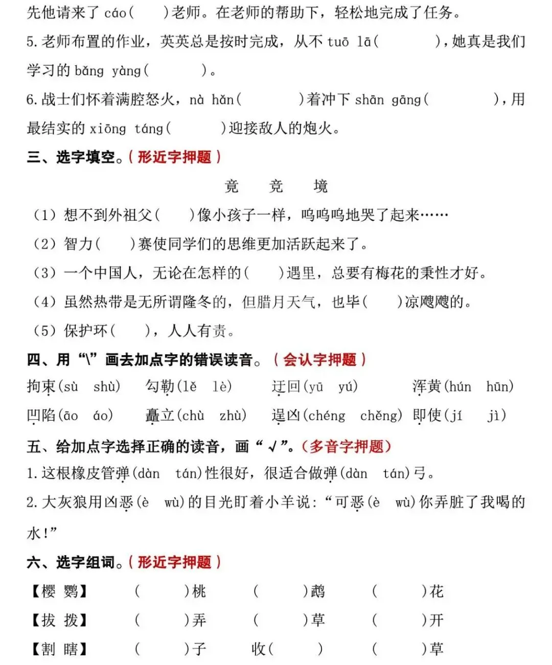 四下语文【期中总复习五大专项过关练(空白)】.pdf