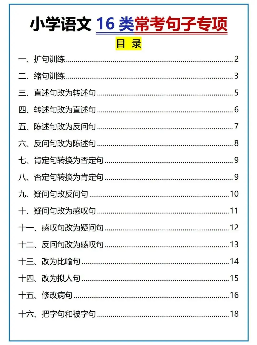 六年级(下)语文 小学《16 类常考句子》专项练习.pdf