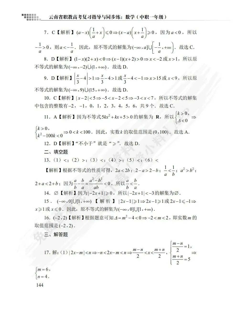 书名:云南省职教高考复习指导与同步练:数学(中职一年级)(双色)(含微课)