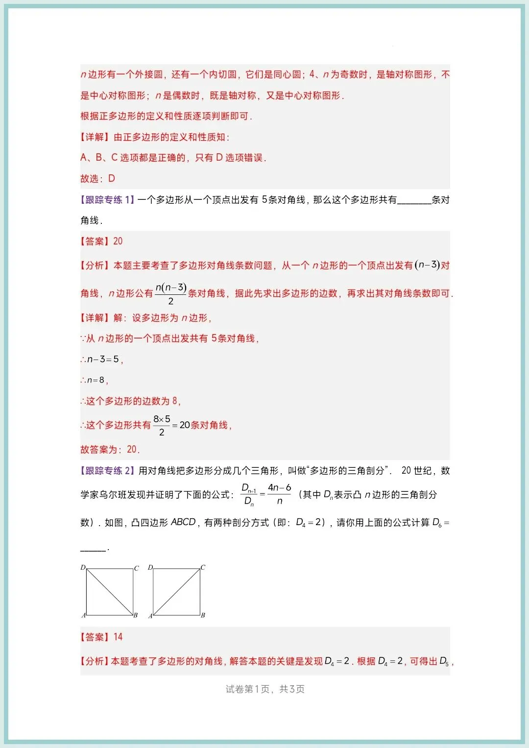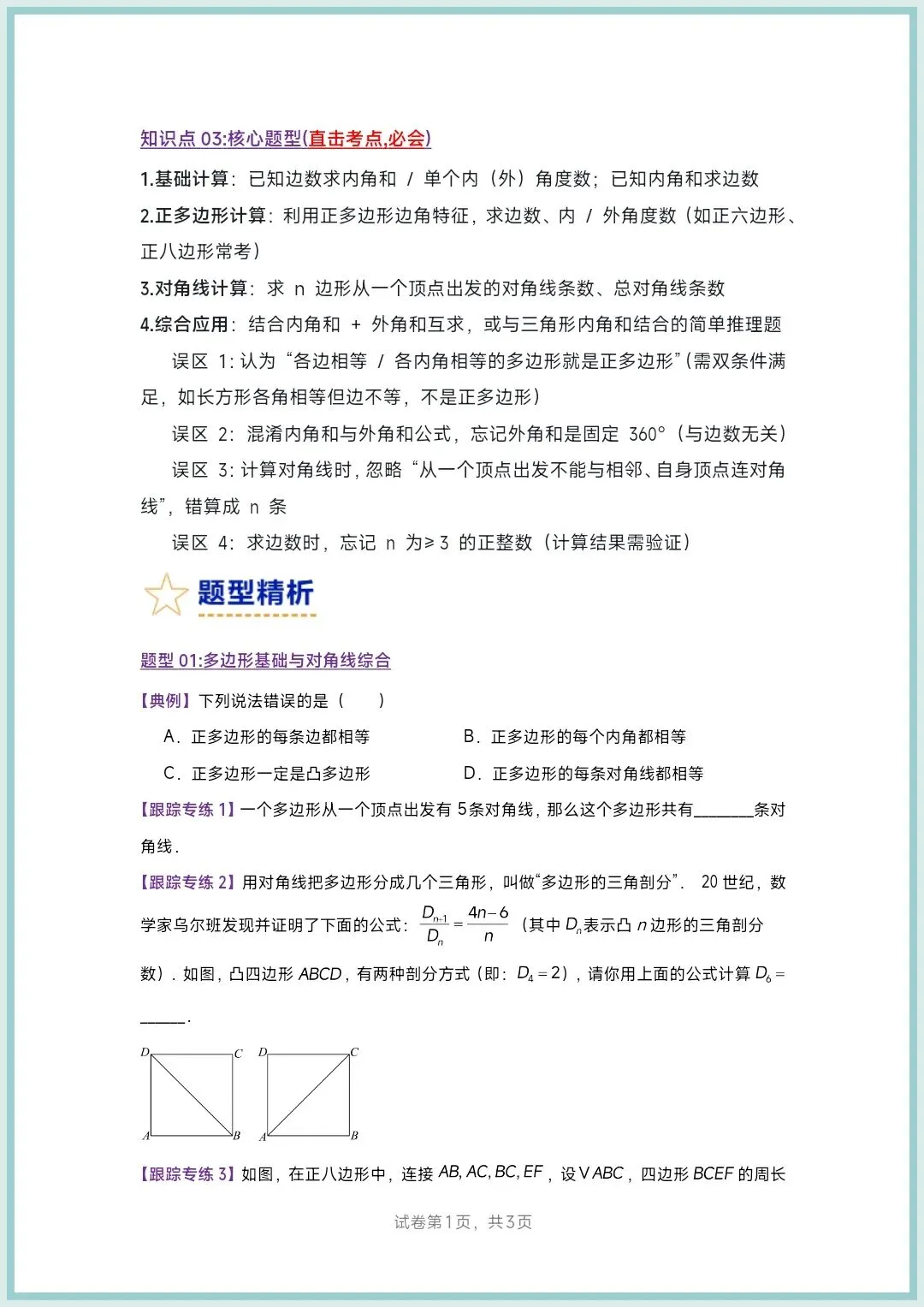 今日分享:2026新版八下数学期中复习讲义(多边形及其内角和+8大题型+知识梳理)习题+解析,有电子版可下载打印!