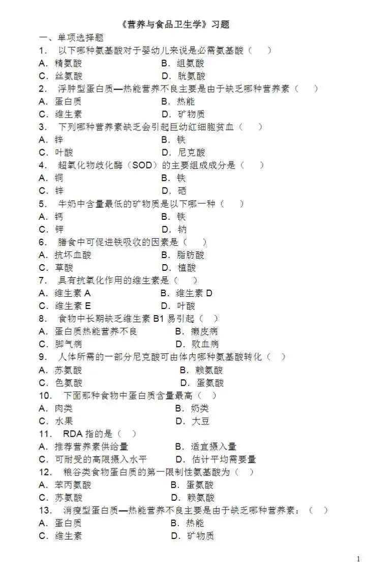 营养与食品卫生学