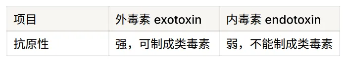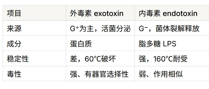 - 脂多糖 LPS = 内毒素,由脂质 A(毒性部分)+ 核心多糖 + O 抗原组成