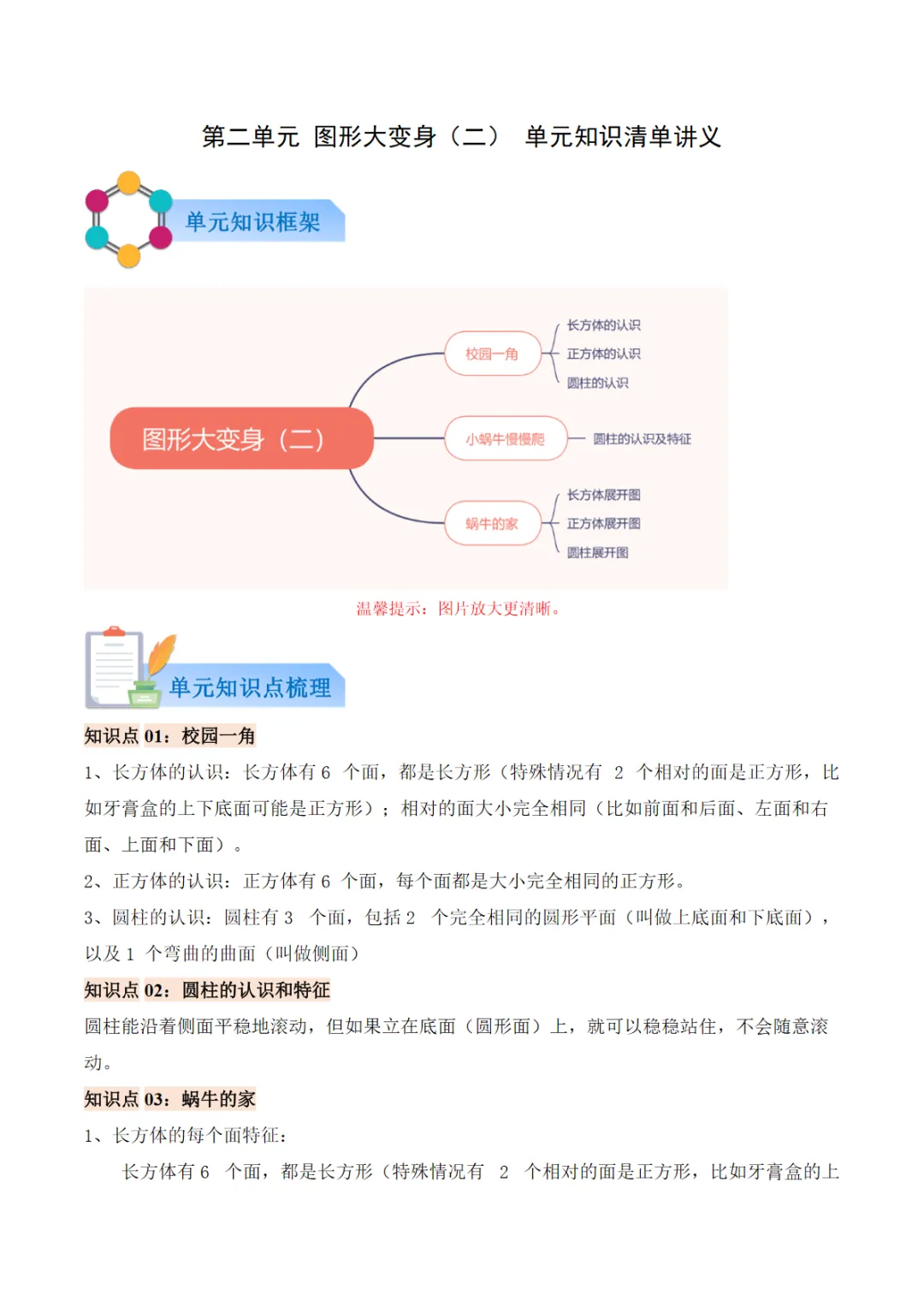 02-单元复习讲义(图形大变身(二))(原卷版)二年级数学下册北师版