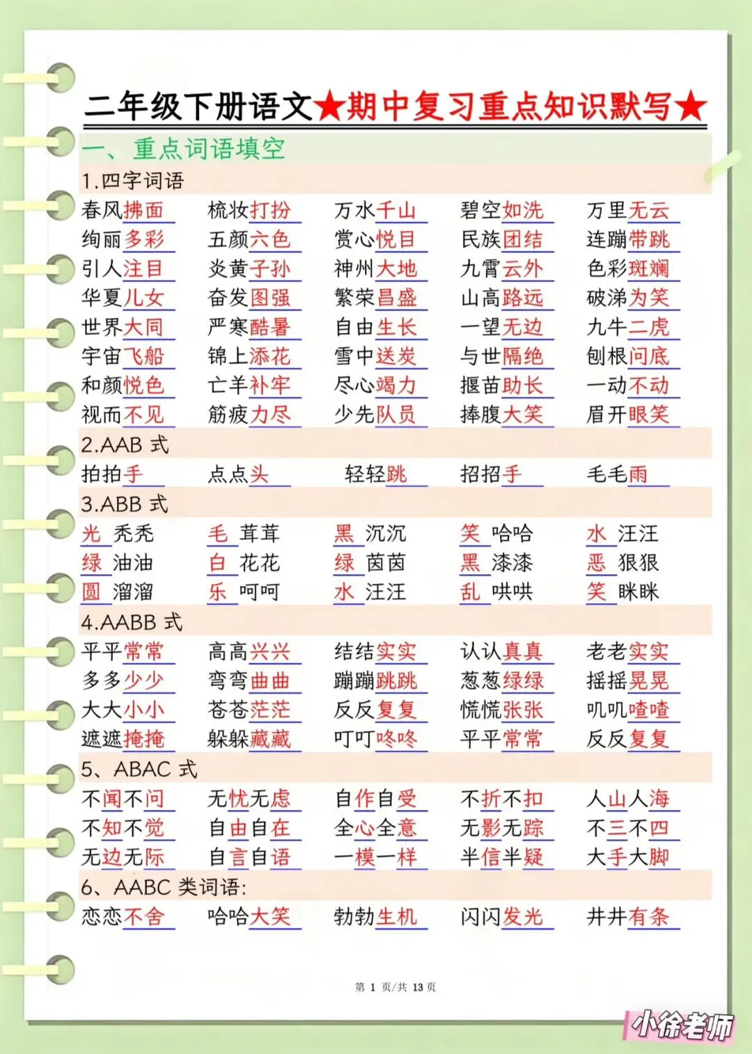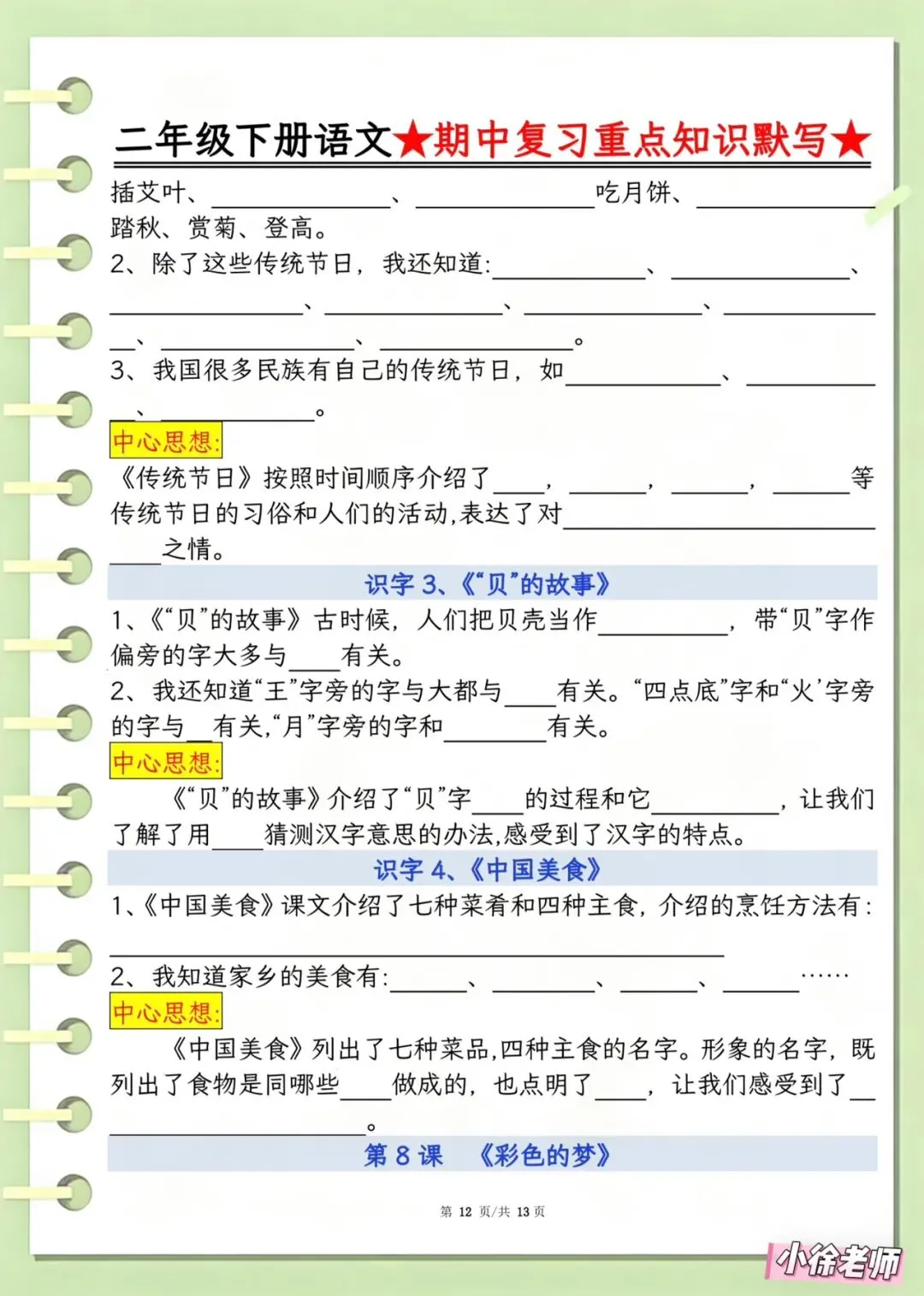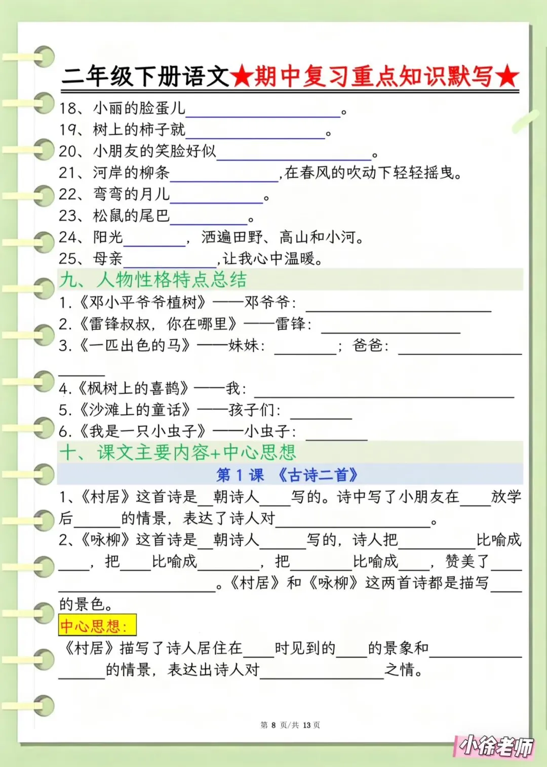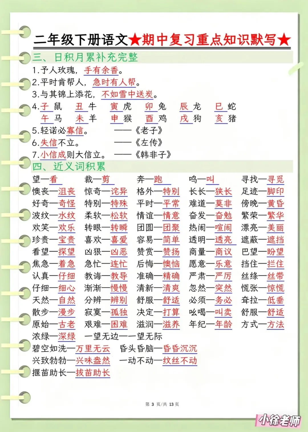 今日分享:教研组刚整理出来的,📚2026春《二年级下册语文期中复习重点知识默写》有空白版,有完整电子版可打印附答案!