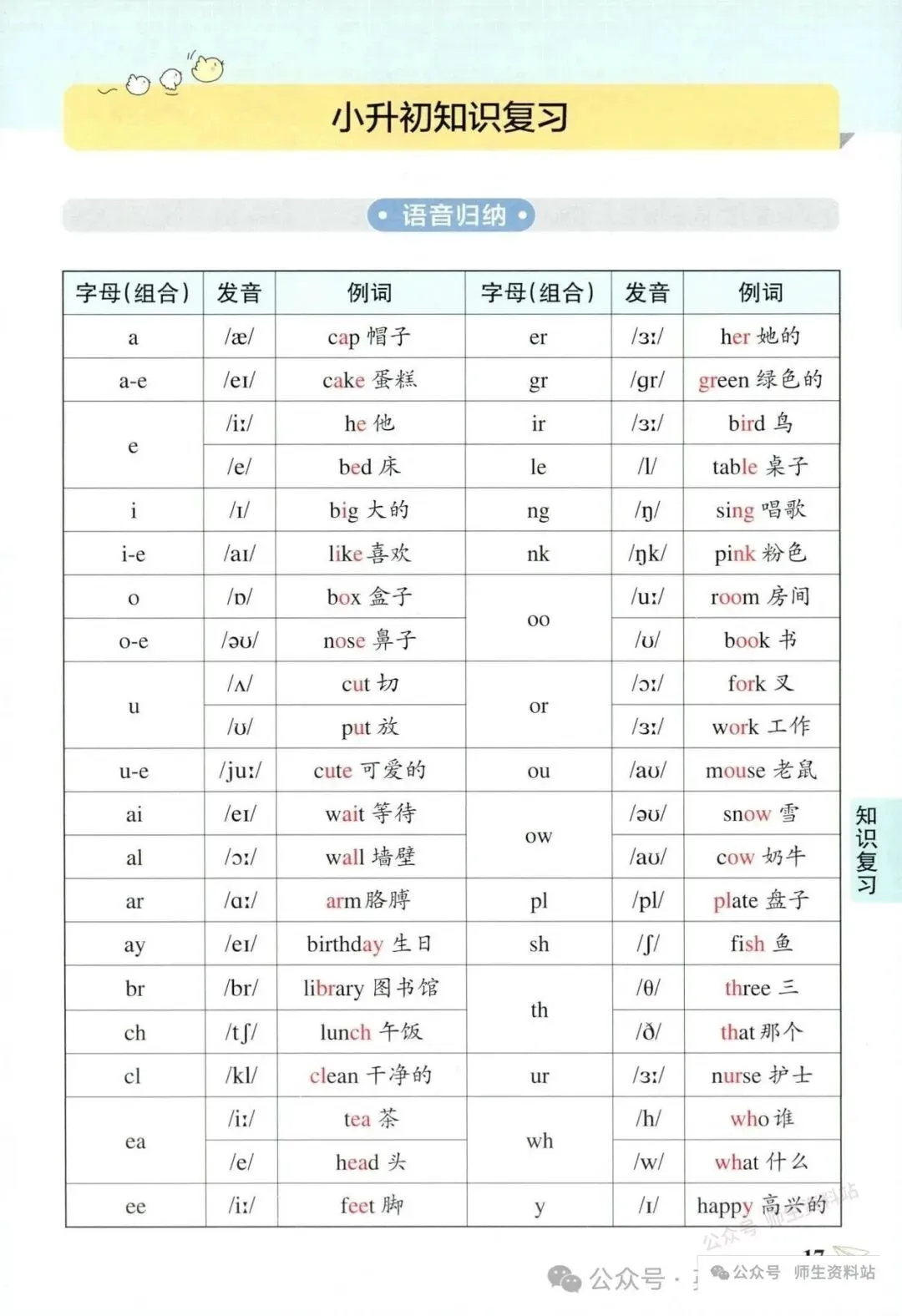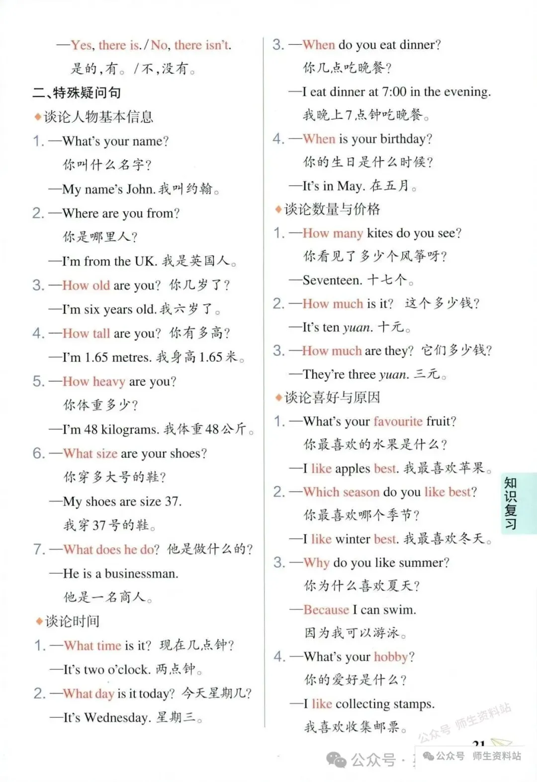 >六年级小升初英语知识复习资料