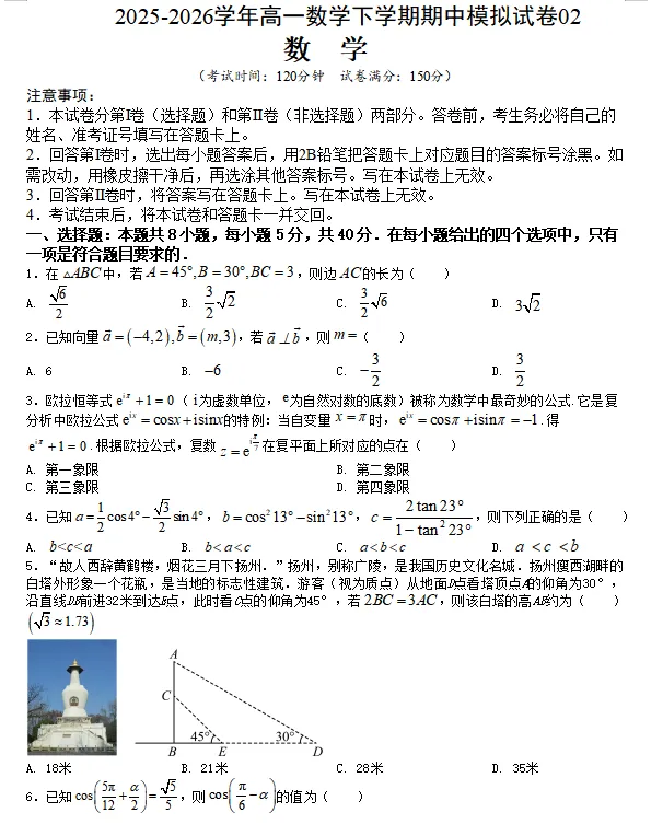 今天老师为大家整理了【2025-2026学年高一下数学期中复习资料包(学生版/解析版】