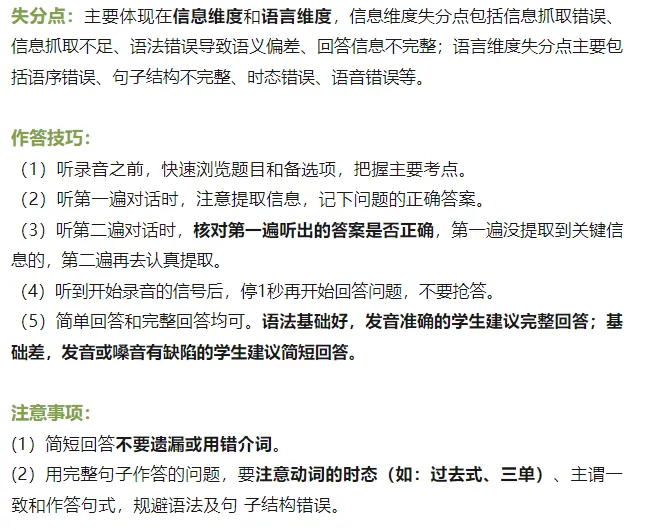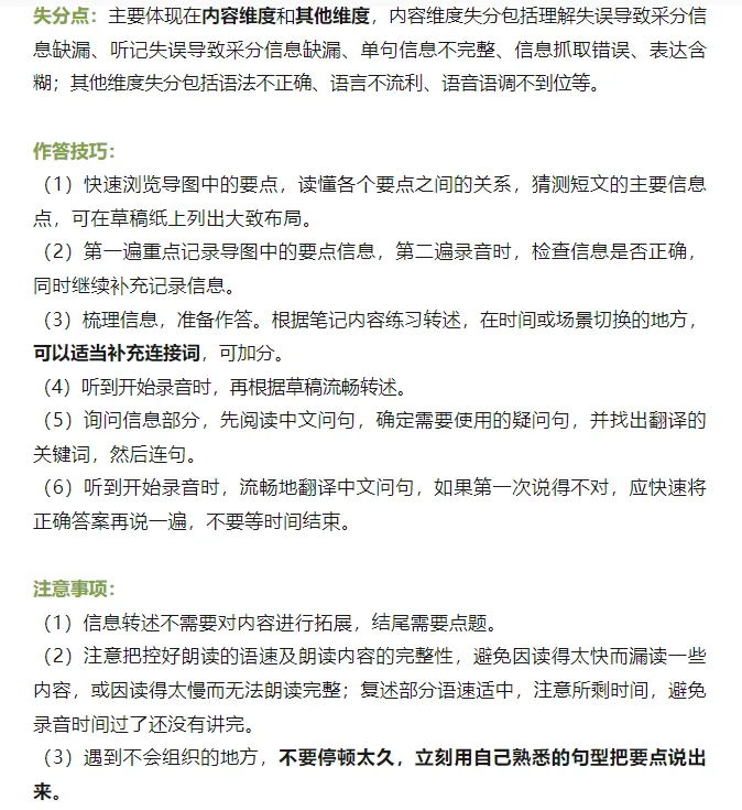 (3) 基本的口语表达能力:考生作答时,要确保发音正确和流利,避免发错音和明显的卡顿。