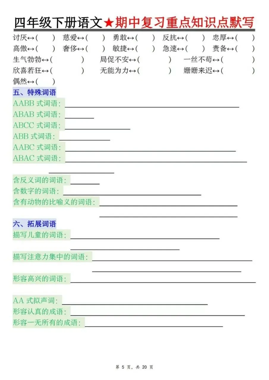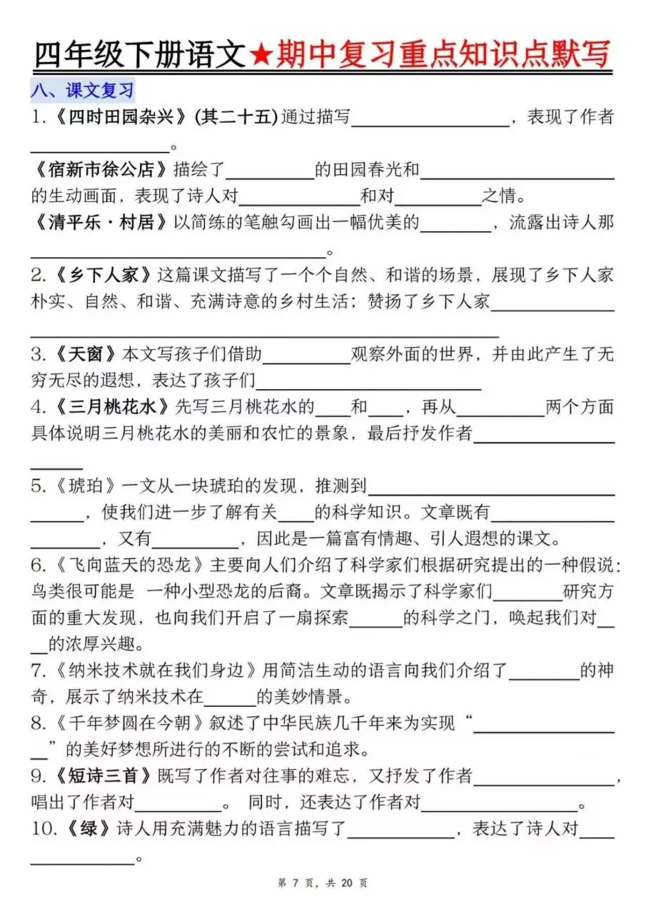 26春四年级下册语文必背知识点晨读单四年级下册语文1-8单元知识复习要点(含答案26春四年级下册语文1-8单元作文学习单+范文26年四年级下册语文阅读理解考点专题拔高训练(含答案26年四年级下册道德与法治晨读晚默小纸条26年四年级下册语文每课写作素材仿写小练笔26年四年级下册语文第一单元素养培优拔尖情景测试卷五套(含答案)四年级下册数学1-8单元常考易错题汇总(人教版含答案四年级下册语1-8单元文按课文内容填空及相关拓展(含答案四年级下册语文课内句子仿写晨读单