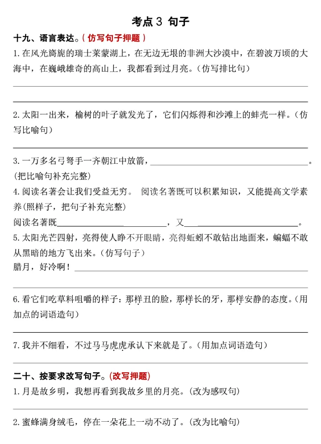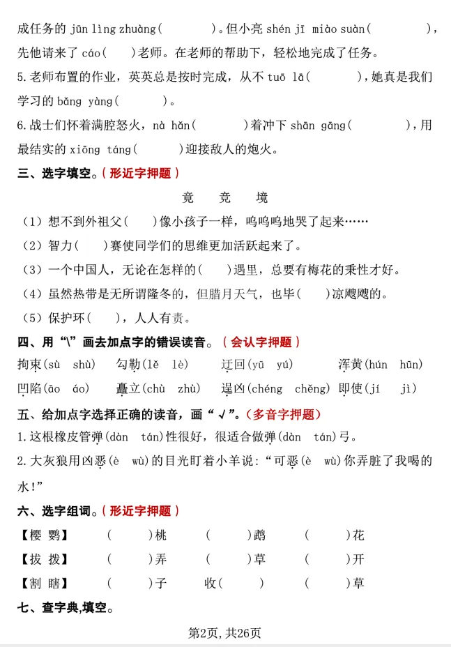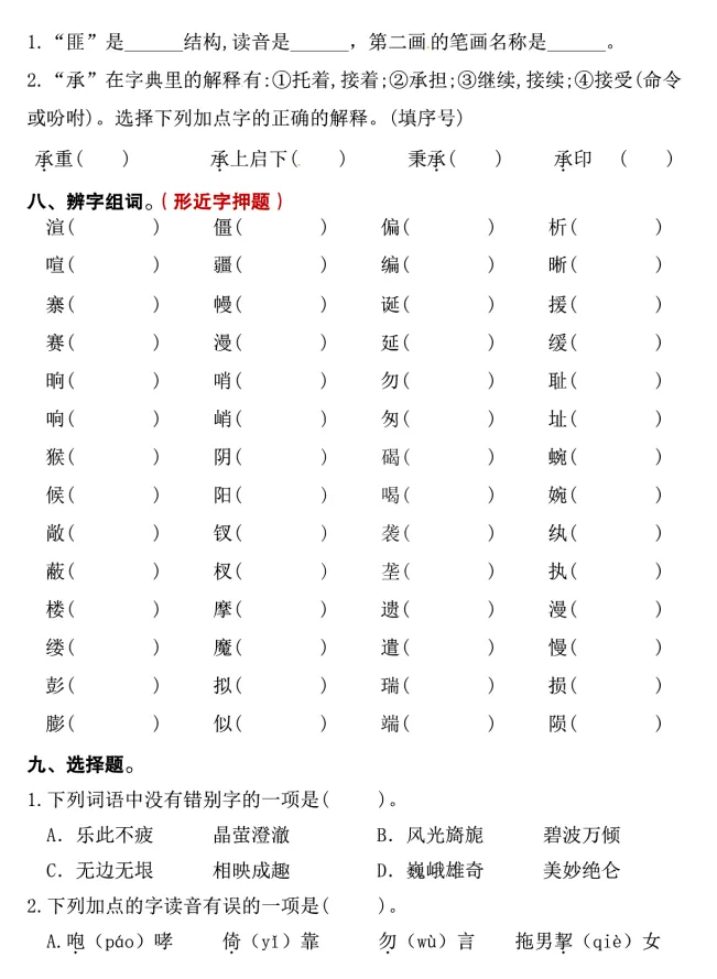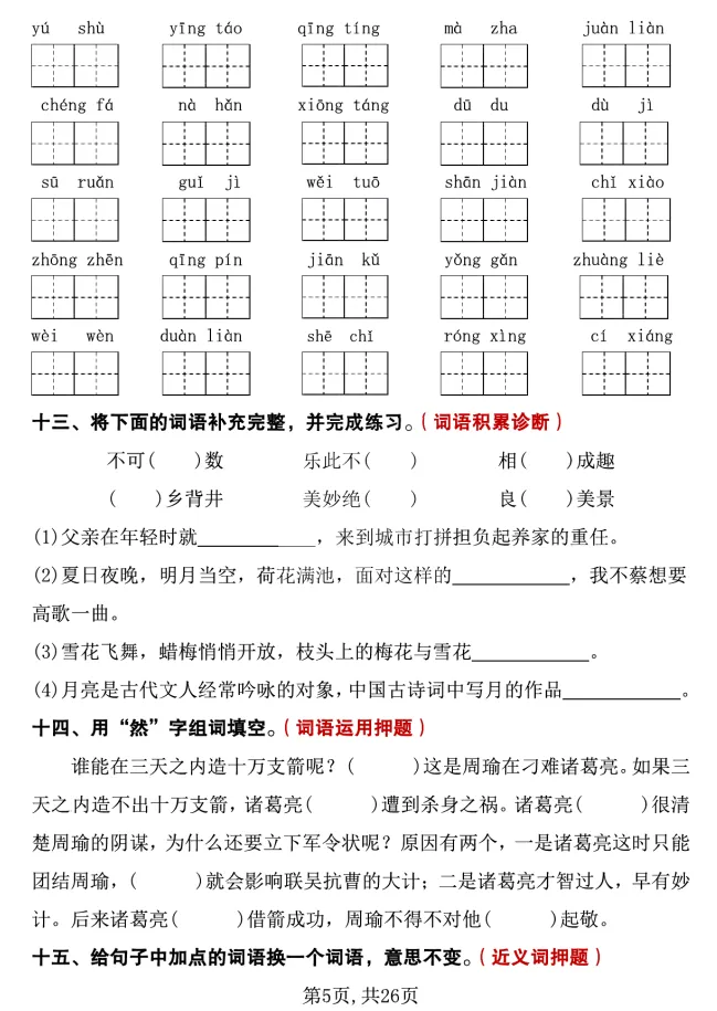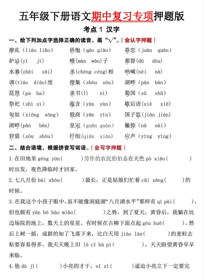 今日分享五年级下册语文《期中复习专项押题版》,需要的家长抓紧打印出来,让孩子每天练一练吧!
