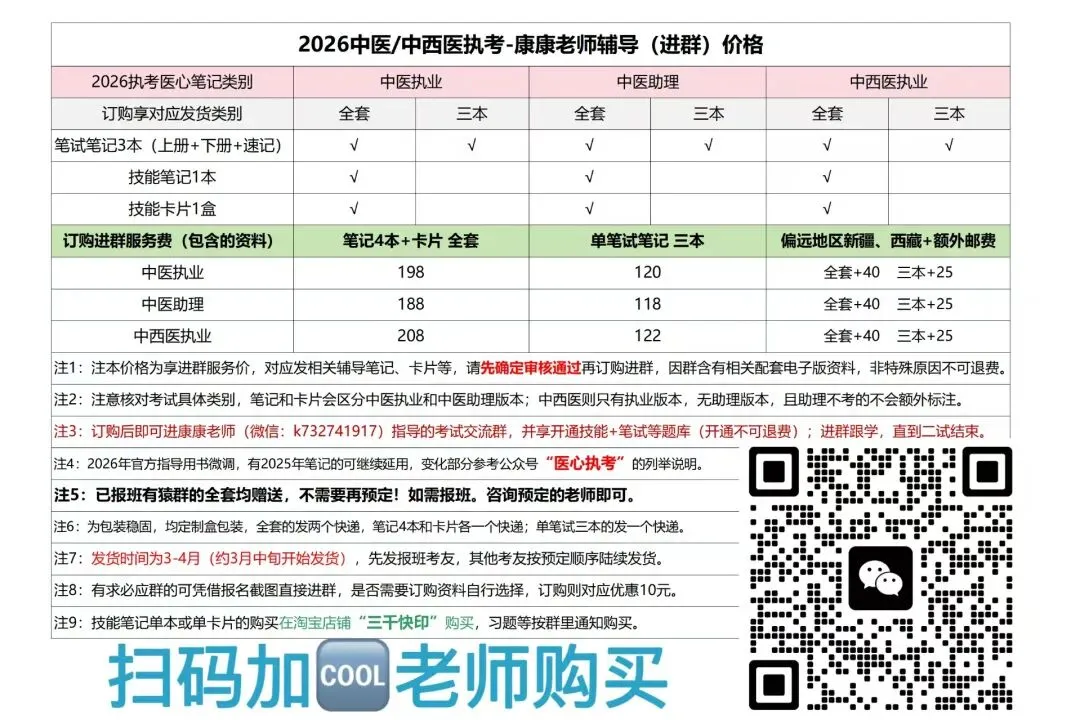 有需执医个性话辅导的可加V,没关注公众号的关注一下,关注之后点 菜单-执医-中医 或者 对话框 发送 中医/中西医,即可弹出文章链接,点 合集 即可看到有关 中医/中西医的所有文章。