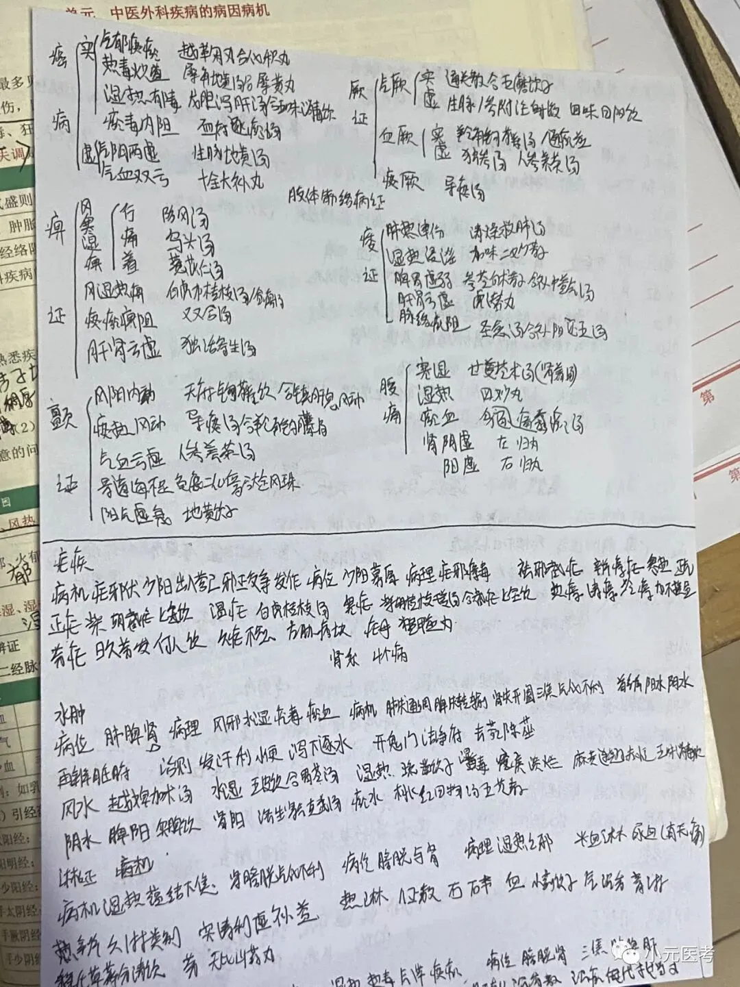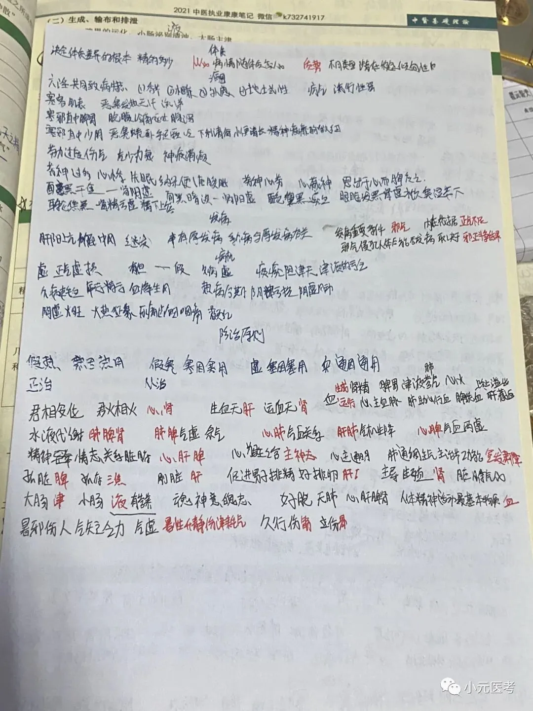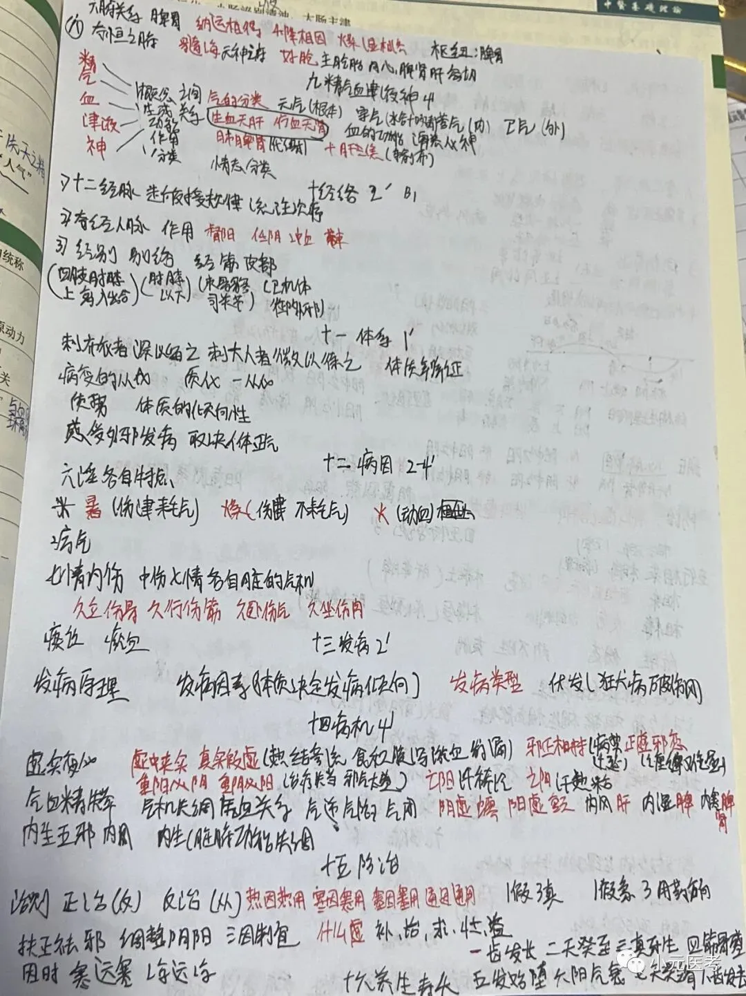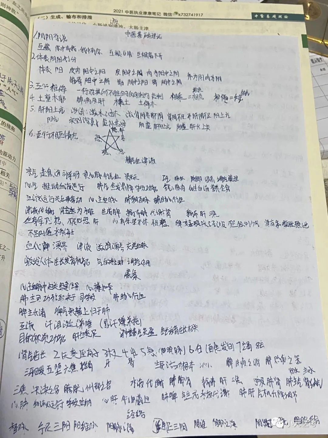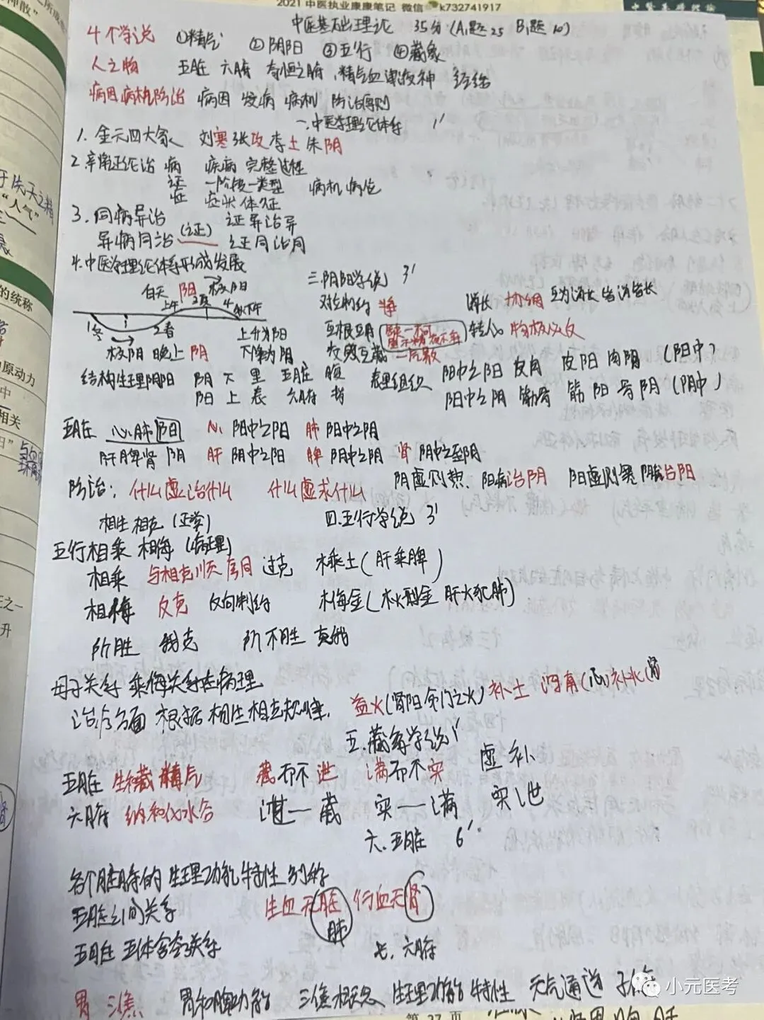 阴阳学说、五行学说、五脏、六腑、精气血津液神、经络、病因、发病、病机都为易考点,对大家来说阴阳学说、病机可能是难点,其他的都是记忆的东西。视频推荐李烁,笔记可参考下图我自己复习时所写笔记。