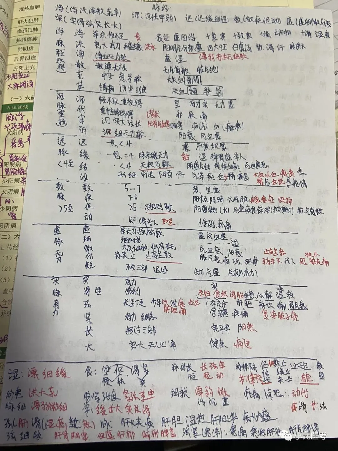 望诊、望舌、闻诊、问诊、脉诊、八纲辨证、气血津液辨证、脏腑辨证为易考点,这一部分的舌脉歌诀要记住,八纲辨证为难点,视频推荐李烁。舌脉歌诀参考以下文章,笔记可参考下图我自己复习时所写笔记。