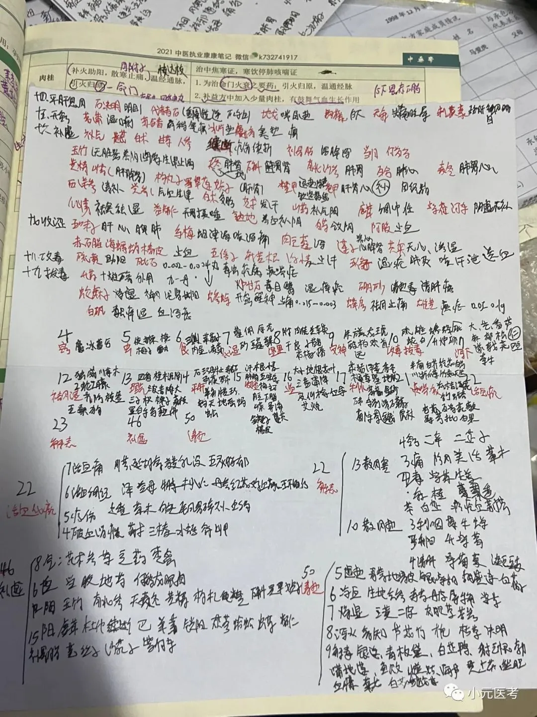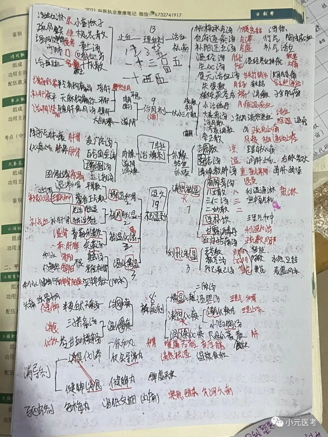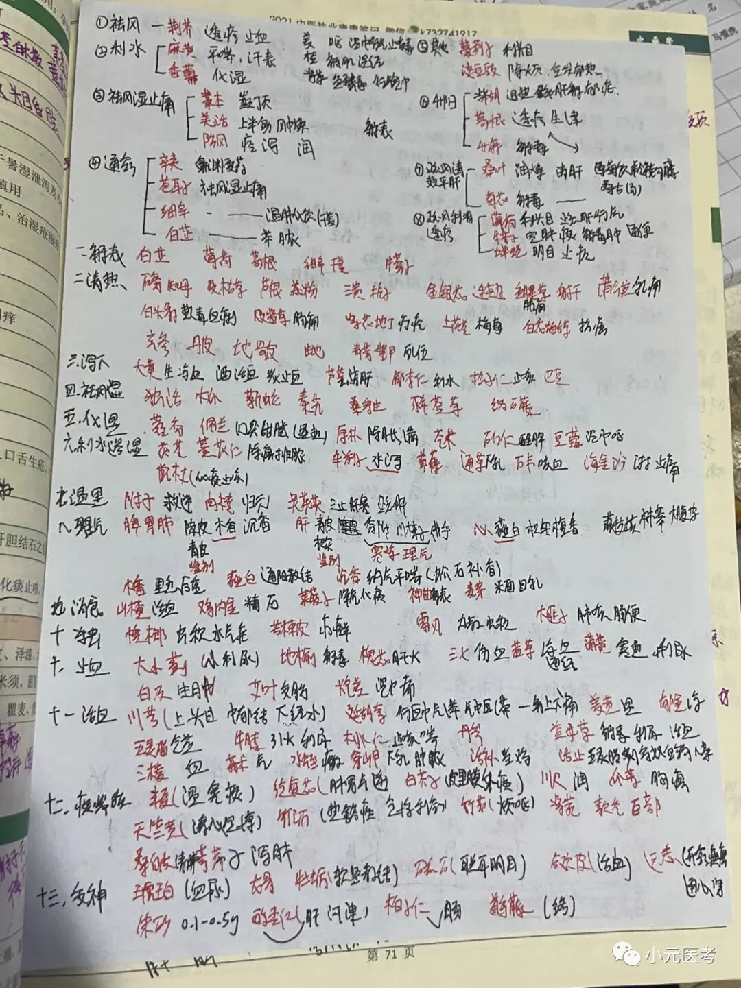 汗清泻下续三湿,温气食虫止活血,化痰安神平息风,窍虚收涩攻拔毒。除此外总论的性能、配伍、用药禁忌也会考到。中药我没用快快记,我用的分组记忆法,先把每个章节的每个小组的药背到,然后主要背他们不一样的功效。视频推荐刘达和李烁。刘达老师的视频课,我看了不下5遍,第一次让我觉得中药记起来可以这么简单,她所采取的就是分组记忆,她也会趣味记忆,帮你背到每个小组包含的药,应对考试没问题。烁哥的视频中药也讲的细,烁哥也做了独家总结。刘达视频课少,李烁视频课多。大家结合自己时间决定。笔记可参考下图我自己复习时所写笔记。