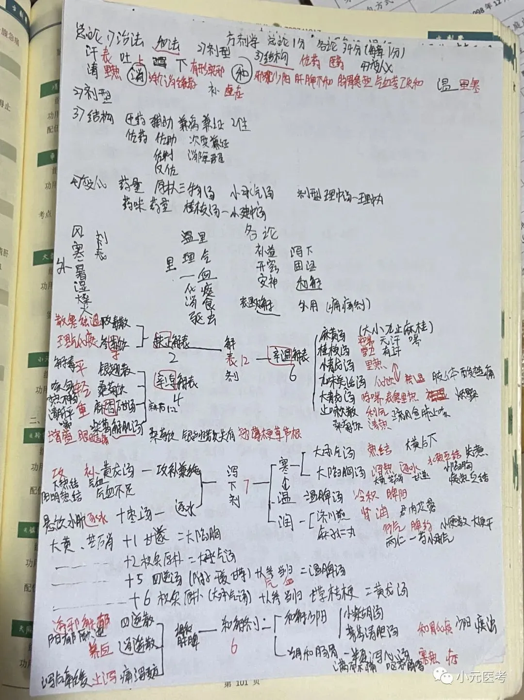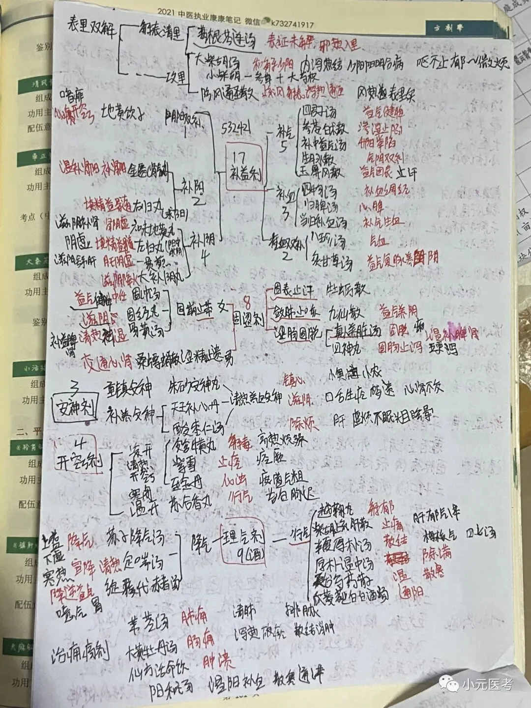 汗下和清暑温解,补涩神窍气与血,风燥湿痰食虫痈。其中解表剂、和解剂、清热剂、温里剂、补益剂、理气剂、理血剂、治风剂、祛湿剂、祛痰剂是重点章节。方剂大家要心里有个框架,要知道每个章节有那几个方剂,功效主治要都背,组成可参考9版记忆歌诀,视频推荐孙立斌和李烁。孙立斌老师的方剂课适合搭方剂,主治功效组成讲的不详细,李烁老师的方剂课主治功效组成都有涉及,还有烁哥的大独家记忆。他俩的课我是都听了的,有时间的先听孙立斌老师然后听李烁老师,接下来背就可以啦。笔记可参考下图我自己复习时所写笔记。
