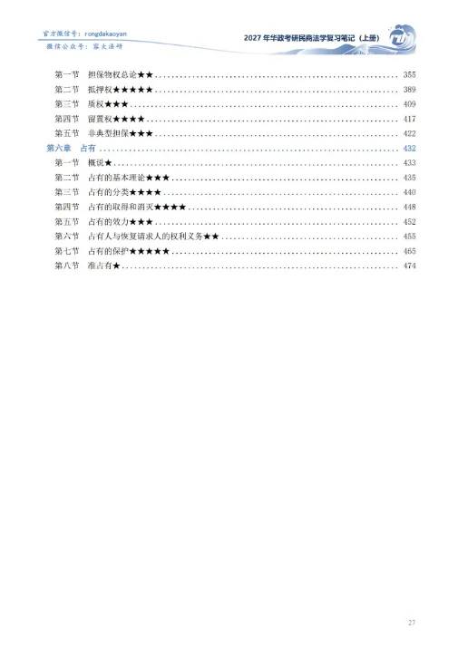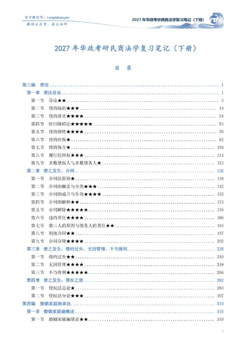 教材涉及大量的背景知识、案例列举等等,内容十分庞杂,对于刚接触华政民商法学教材的本科生而言,教材中知识点很难一次摸清楚,因而需要结合复习笔记来看。通过先看复习笔记摸清每章的重点内容,然后看对应部分的教材,加深理解,带着问题看教材能有效提高阅读教材的质量。