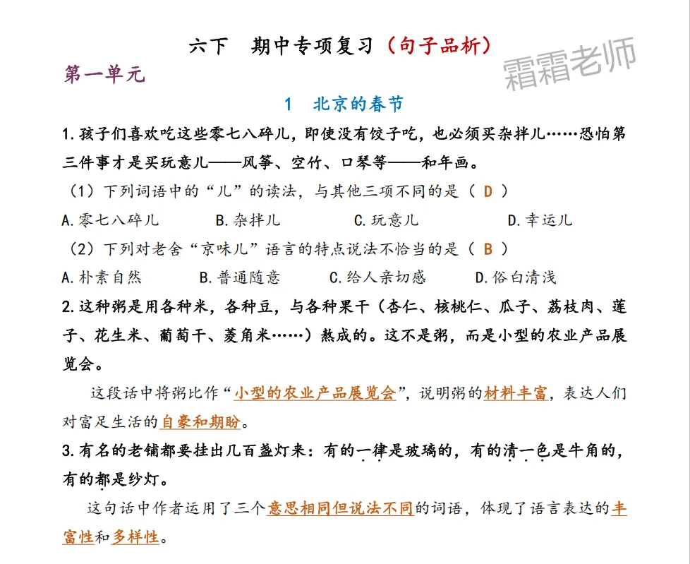 六下前四个单元的基础知识,重点不在“广”,而在“准”。很多孩子复习时翻一遍书就算过,结果考试时易错字照样错。
