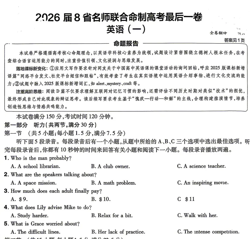 【新高考Ⅱ卷】(含日语)山西省思而行2025年3月高考适应性测试(山西一模)