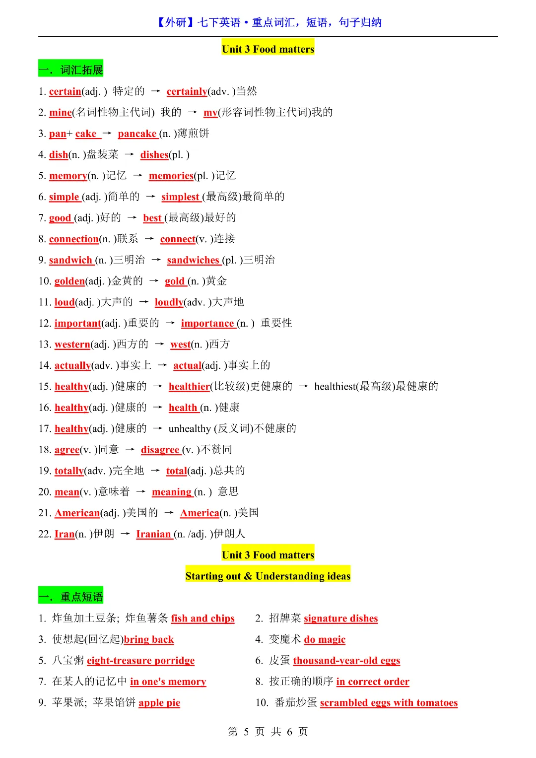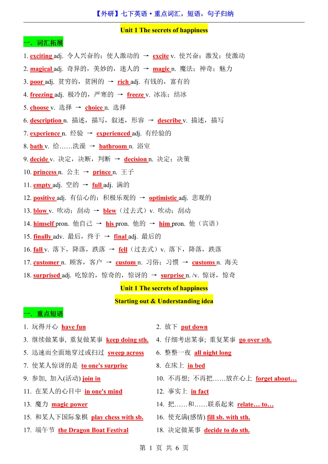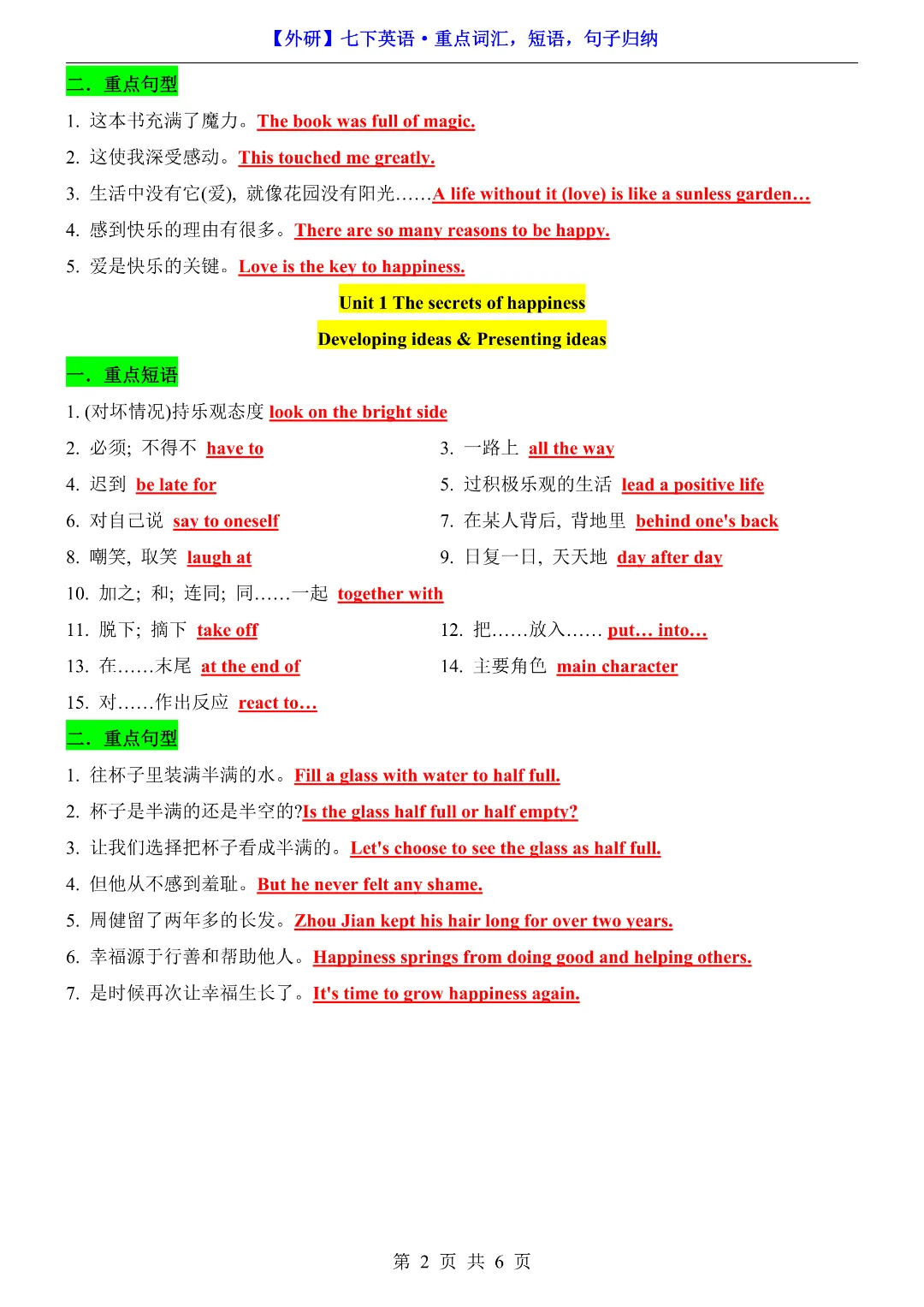 26春七年级下册英语期中复习重点词汇,短语,句子归纳(外研版)|完整电子版可打印!