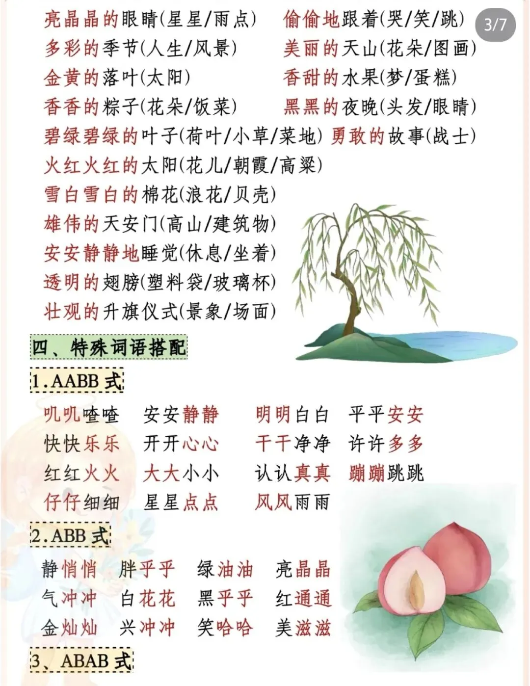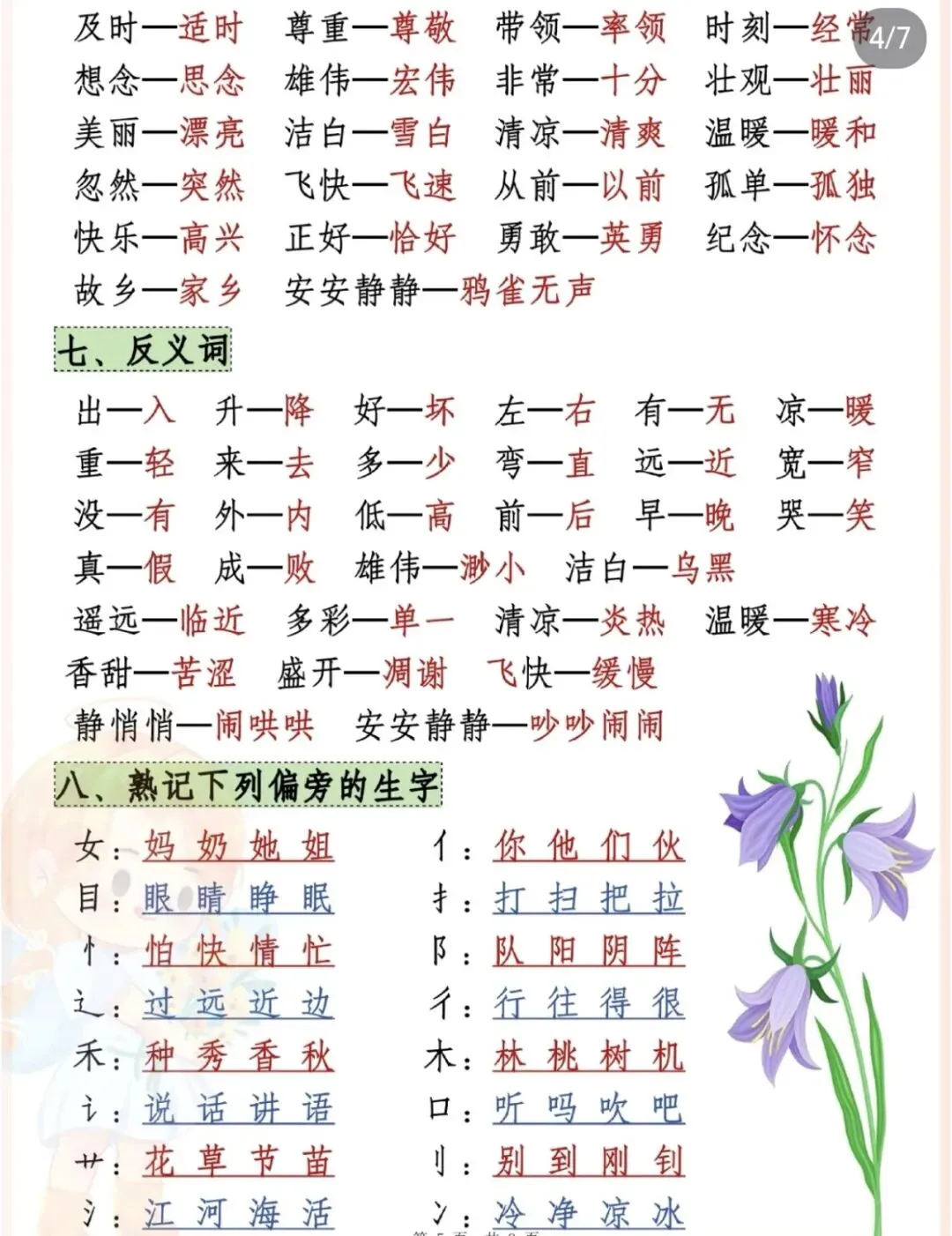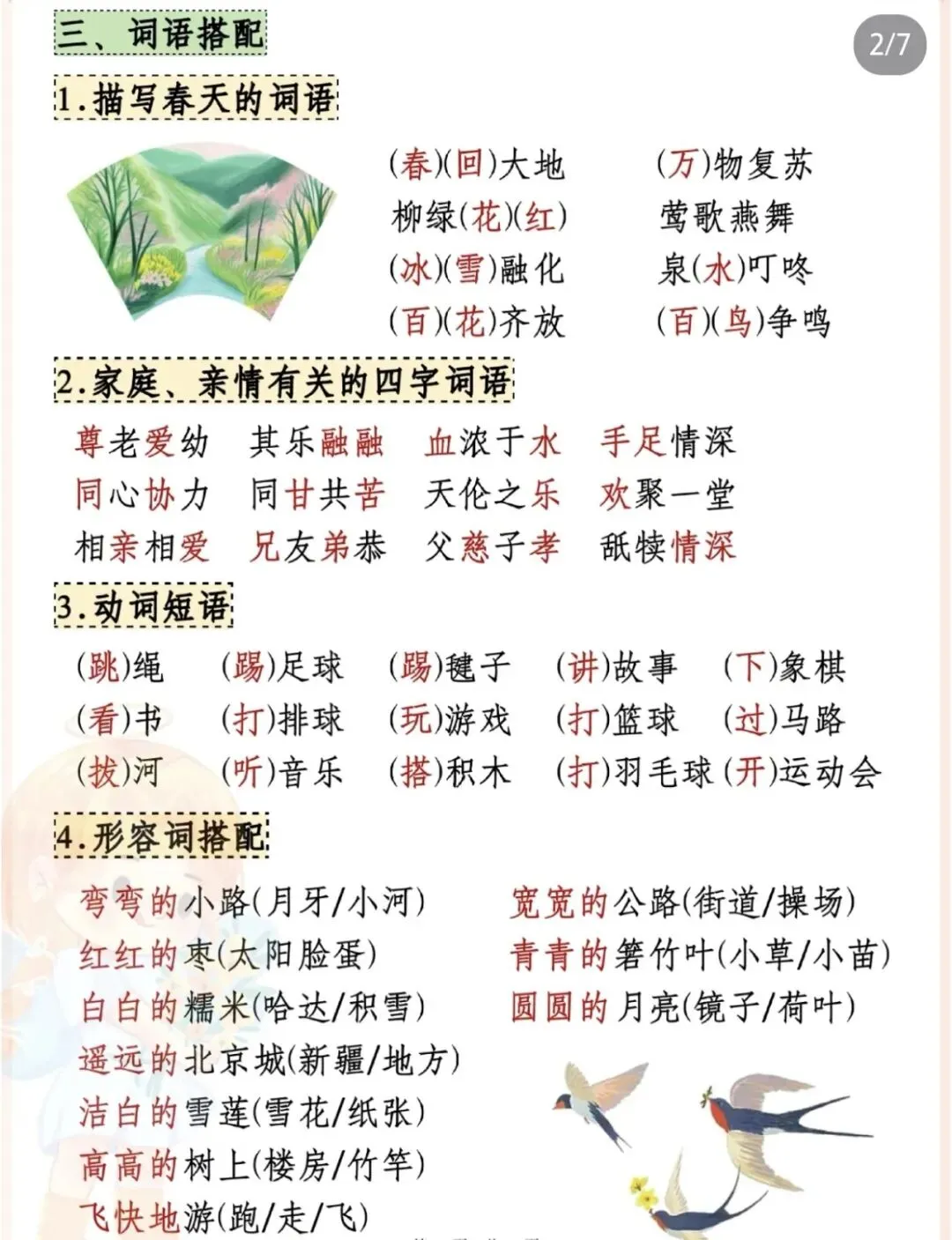 ✅ 近义词、反义词、词语搭配、AABB式/四字词语积累;