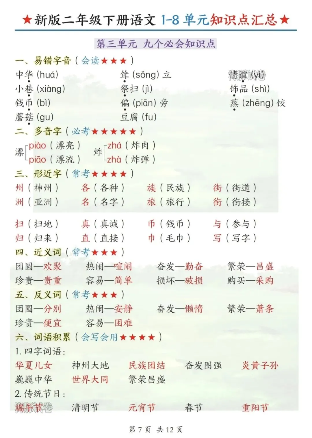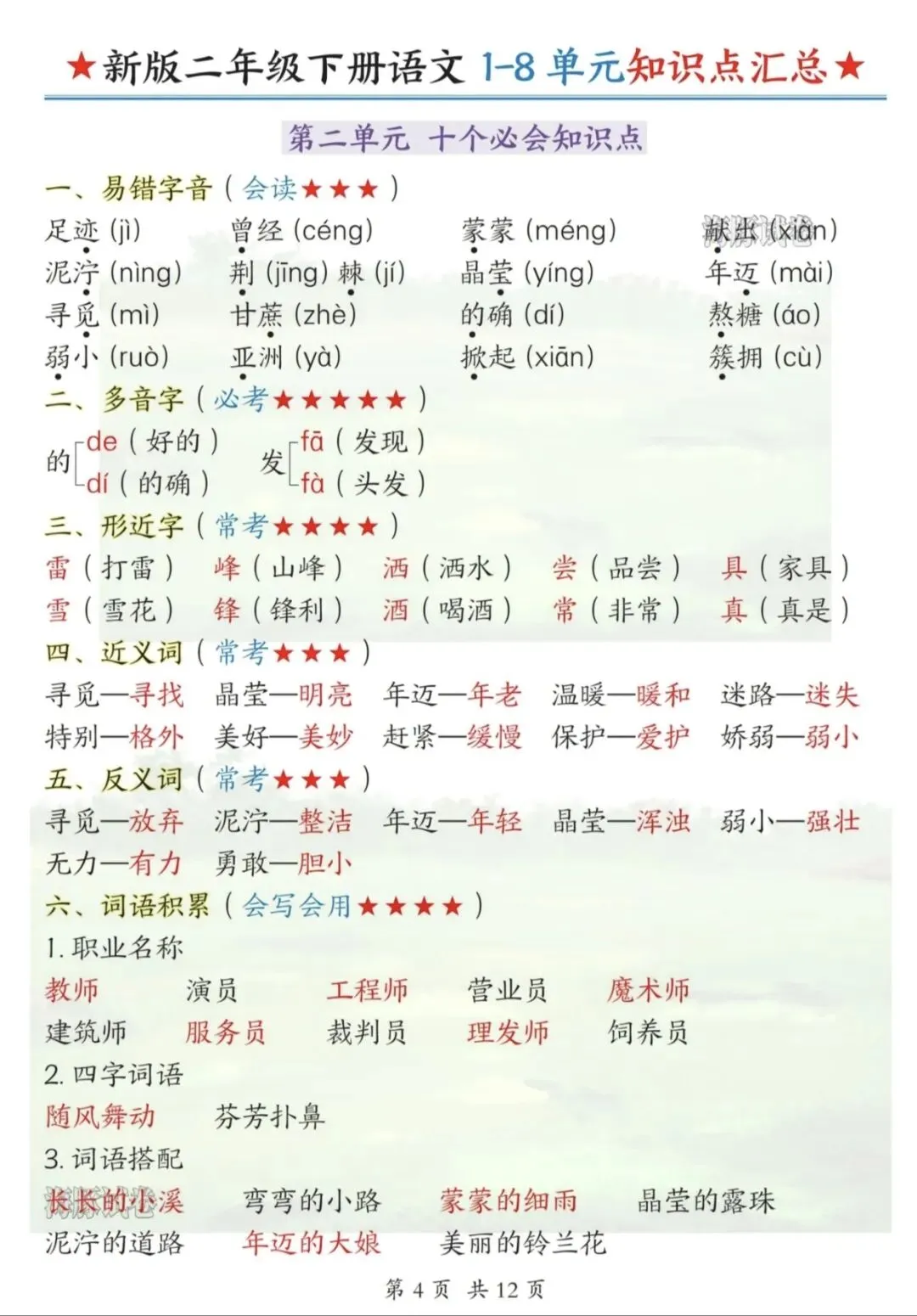 二年级专属复习资料