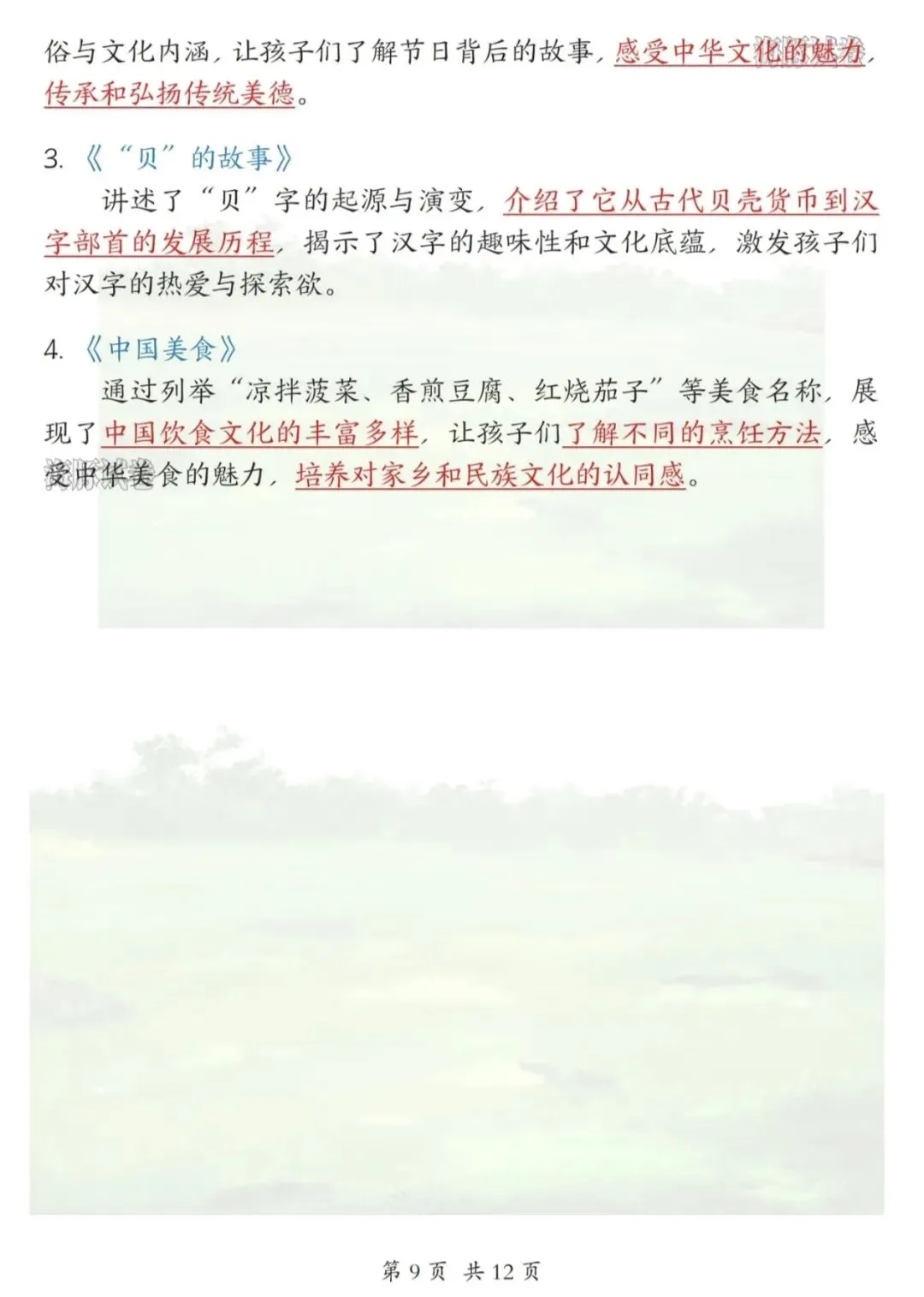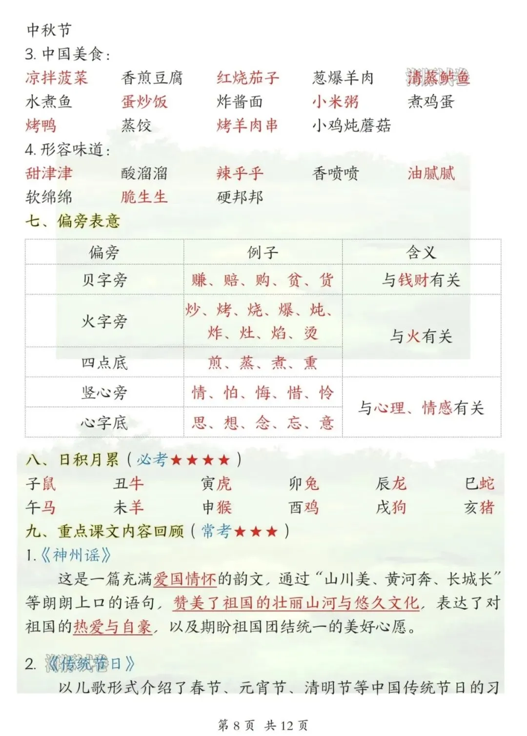 ✅ 偏旁表意、传统节日、中国美食等文化知识点梳理。