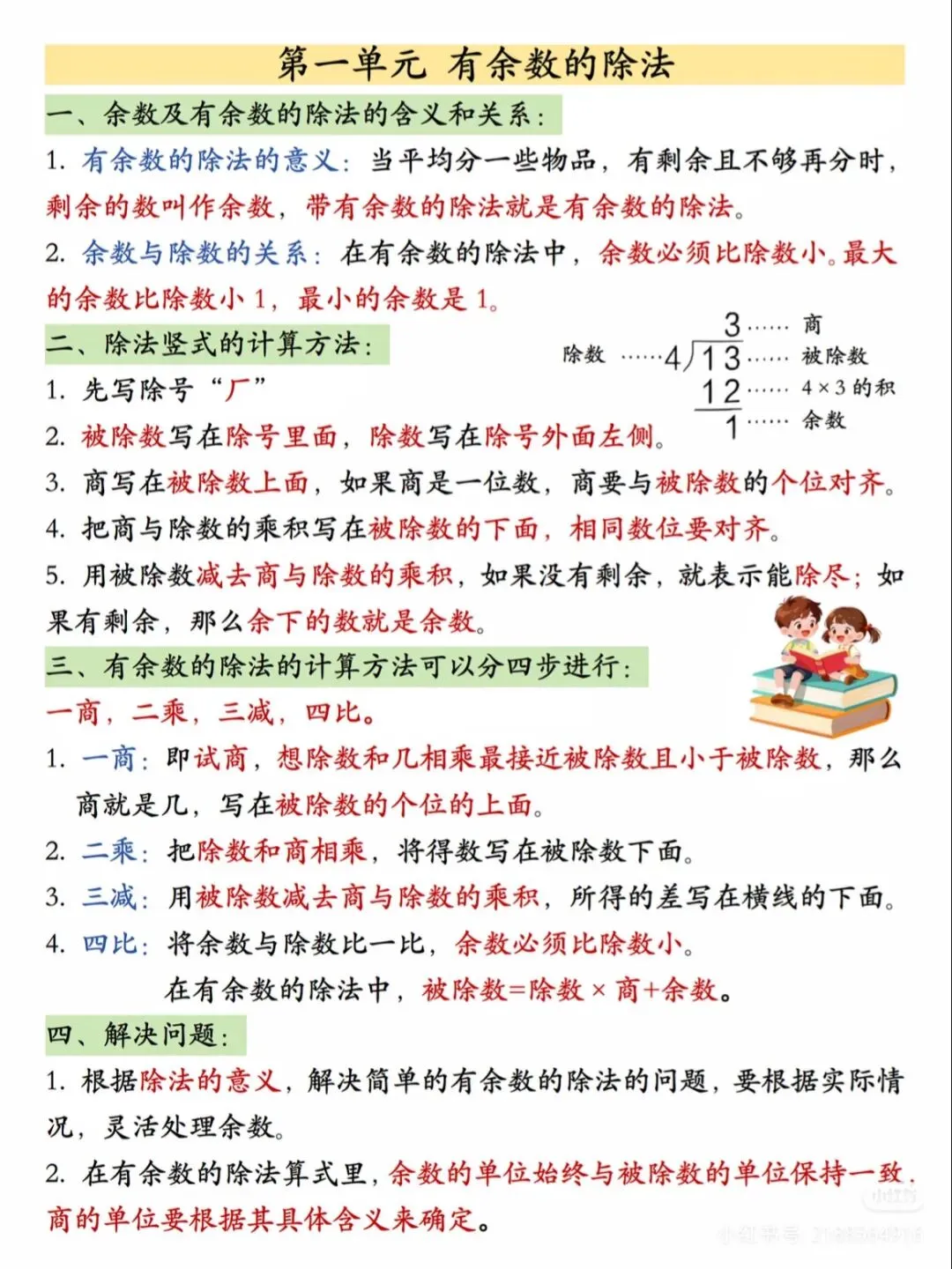✅ 有余数的除法(竖式计算、余数性质、实际应用);