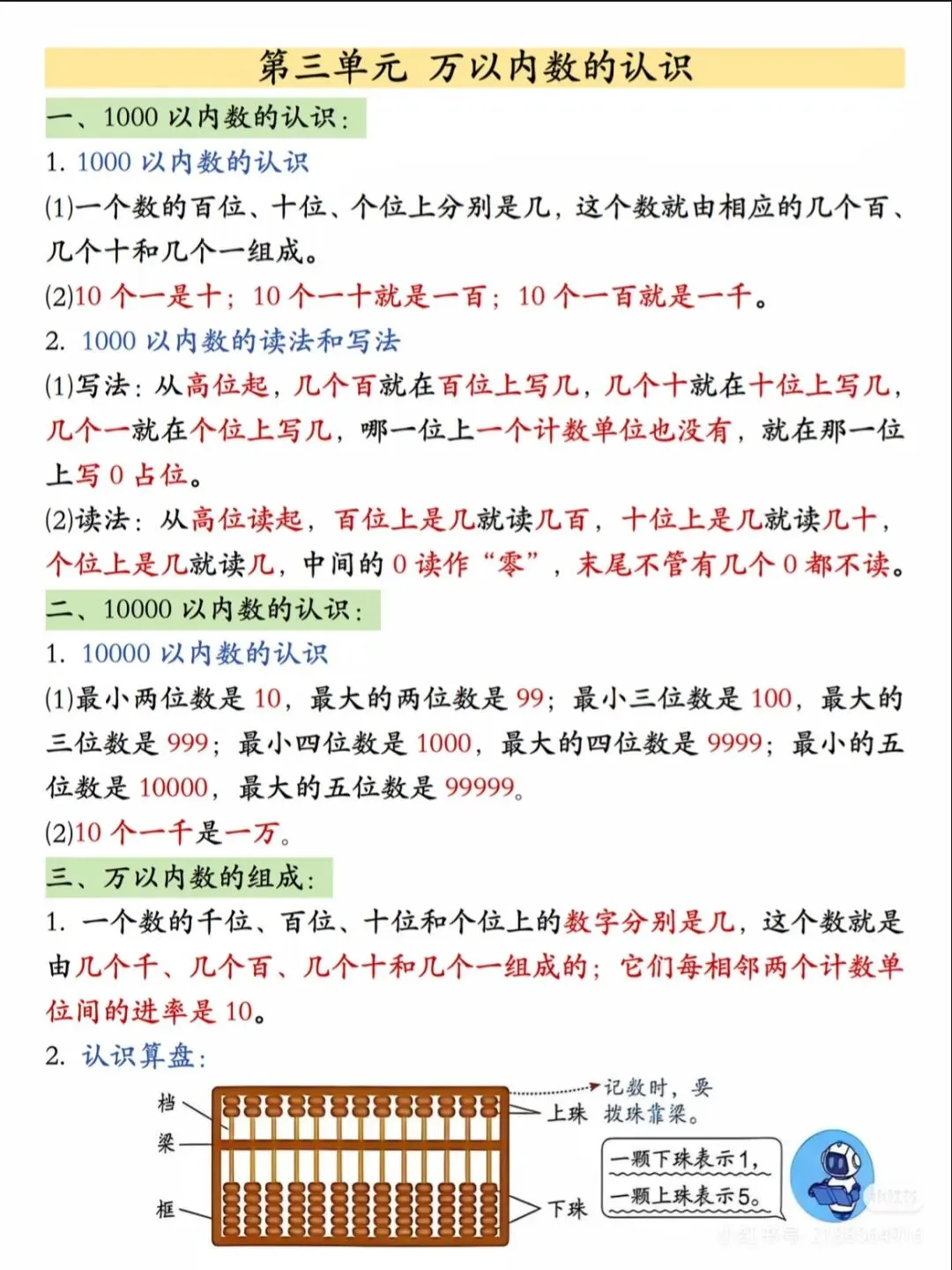 ✅ 万以内数的认识(读数、写数、大小比较、算盘认识);