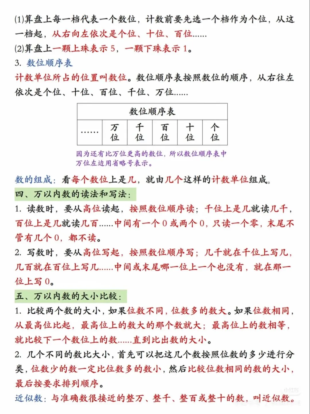 ✅ 万以内数的认识(数位顺序、读数写数、大小比较);