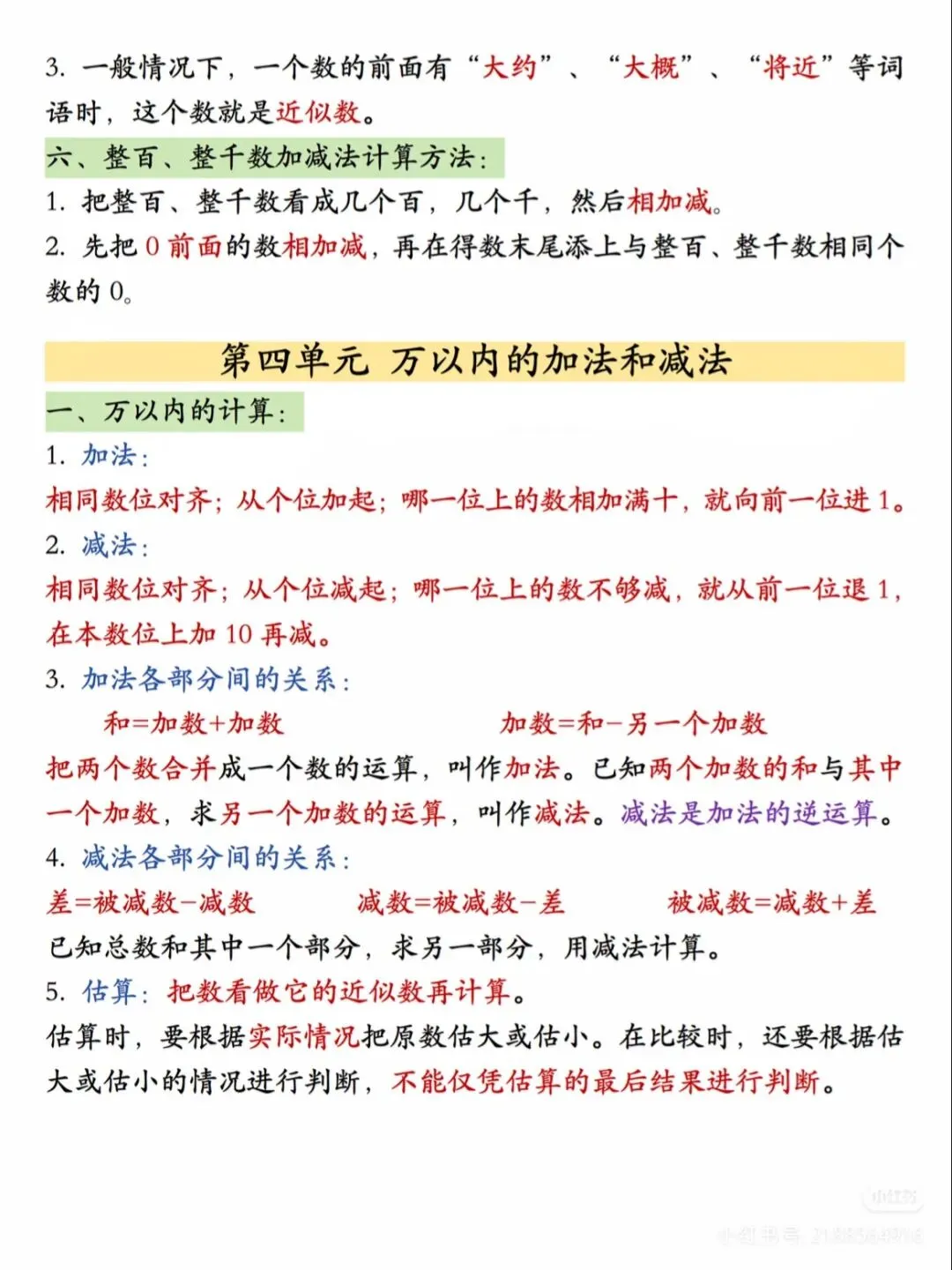 ✅ 万以内的加减法(笔算、验算、估算、加减法各部分关系);