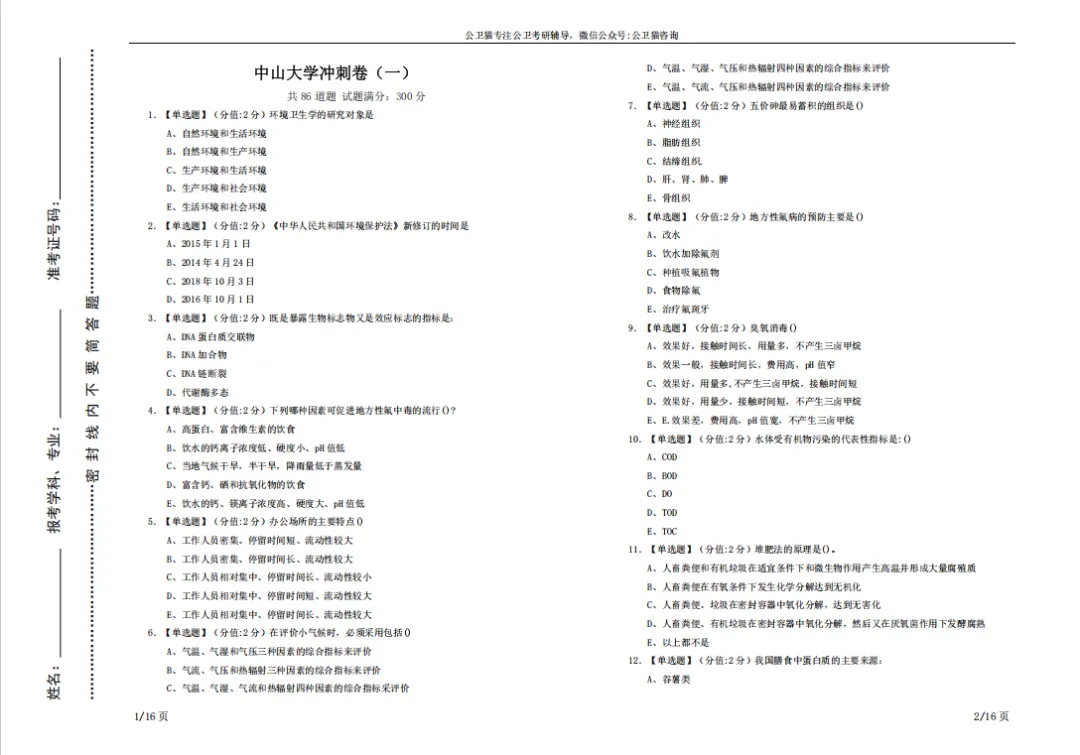 11-12月,时间紧张了起来,没有时间胡思乱想了,每一天都要用在刀刃上。政治刷题和背诵和做套题测试自己,英语刷真题测试自己,正确率稳稳地提高了。专业课开始刷真题,每天一套题目,主观题一定要用纸写下来。11月和12月的测试阶段,是检验自己前面复习情况的关键点,这个时候各大机构都出了专业课的模拟卷,我建议大家考前可以刷一下查漏补。我当时买的是公卫猫的冲刺卷,有三套,一天一套,模拟专业课考试环境,也是这个过程中我发现自己在三大卫生的一些知识点遗漏。