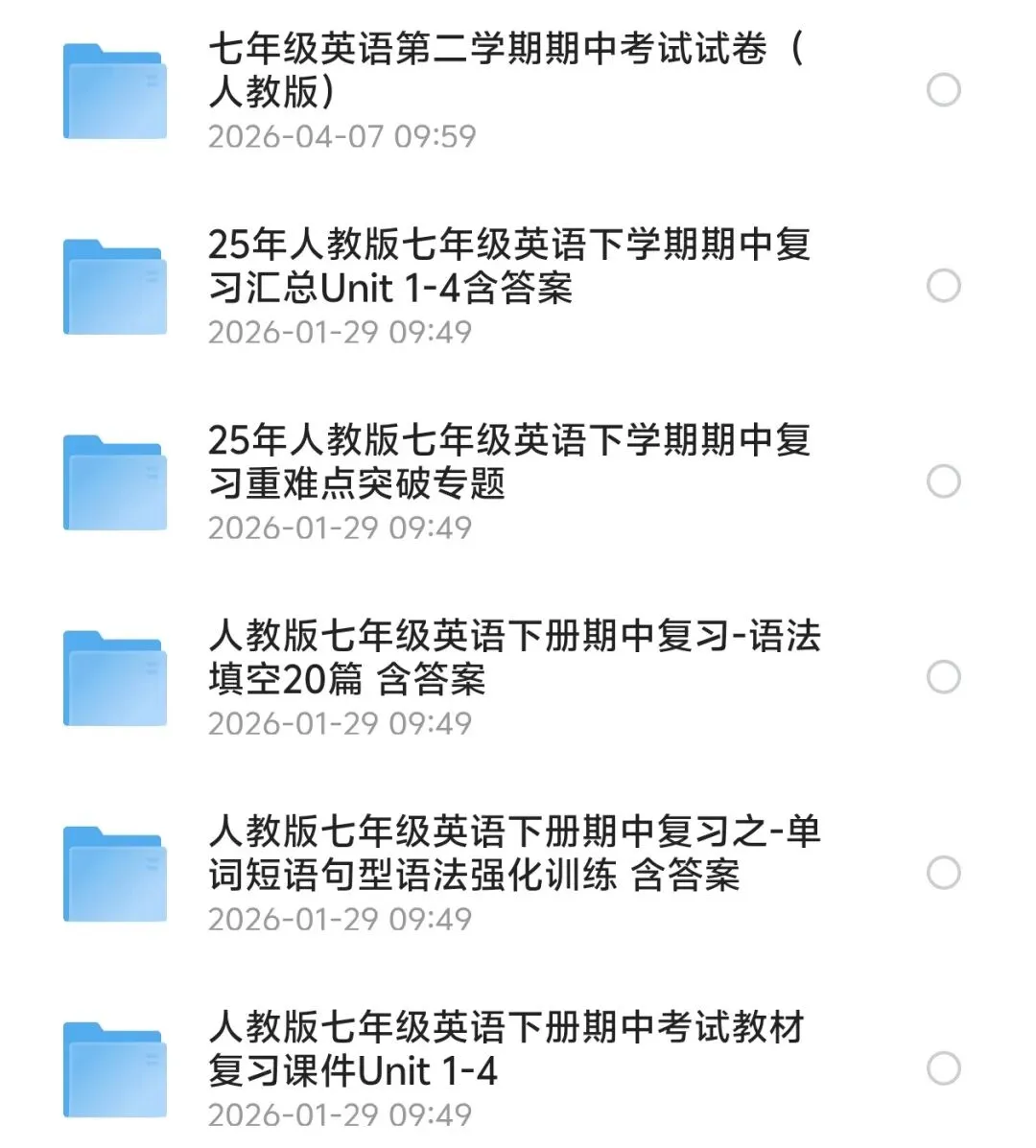 今天把自己收藏的七年级下册复习资料分享给大家,包括1-4单元复习课件,期中重难点突破,语法填空,短语、句型、语法强化练习等等一系列资料,希望能帮助各位老师和同学们在期中获得好成绩。