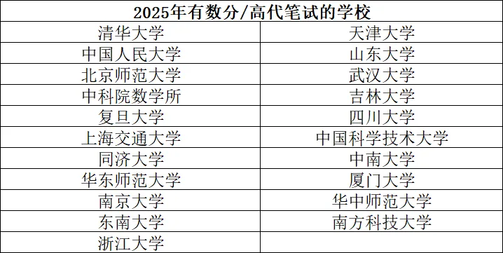 因为很多985和211高校在保研考核中涉及数分笔试,下图统计的2025年夏令营&预推免含数分笔试考核的学校,快看看是否有你的心仪院校吧!