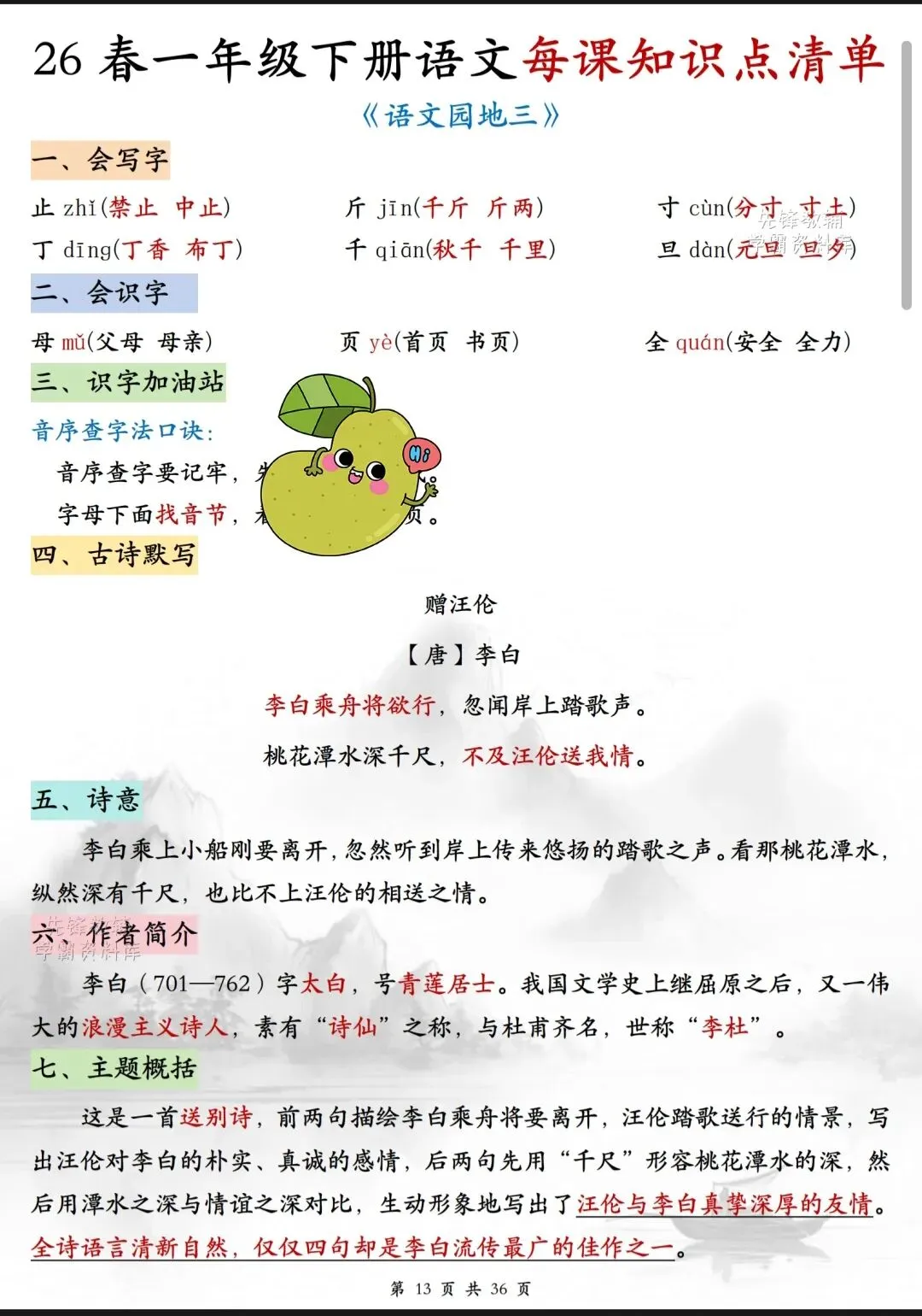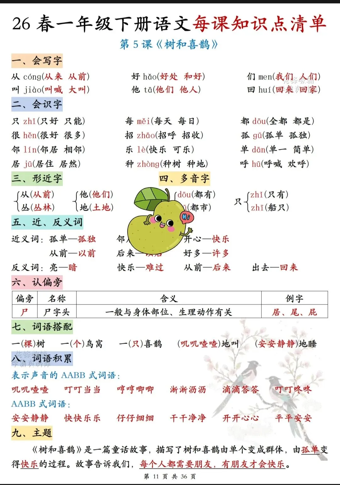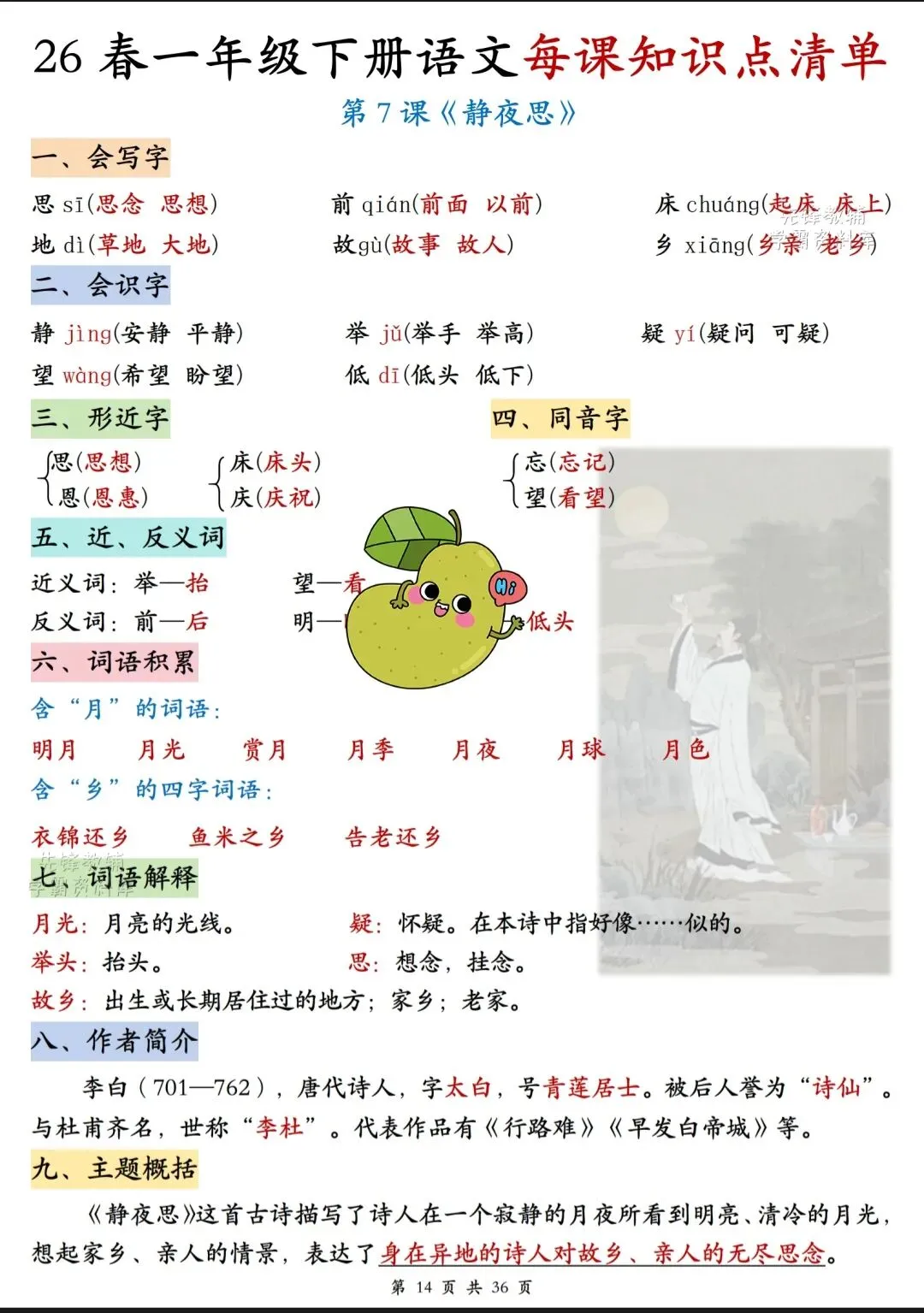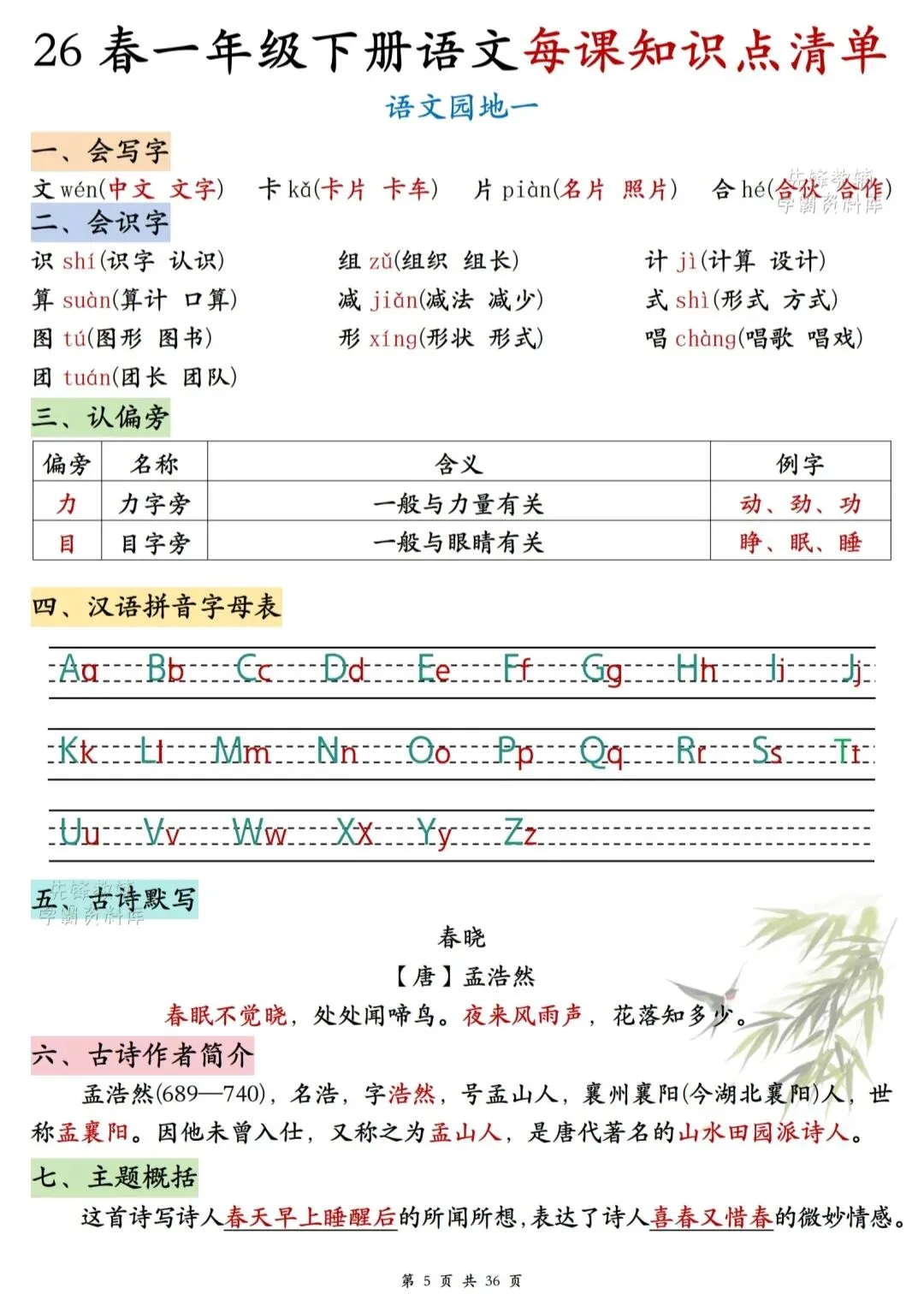 马上期中考试了,这份一年级下册语文每课知识清单,赶快打印出来,让孩子背一背,记一记吧!