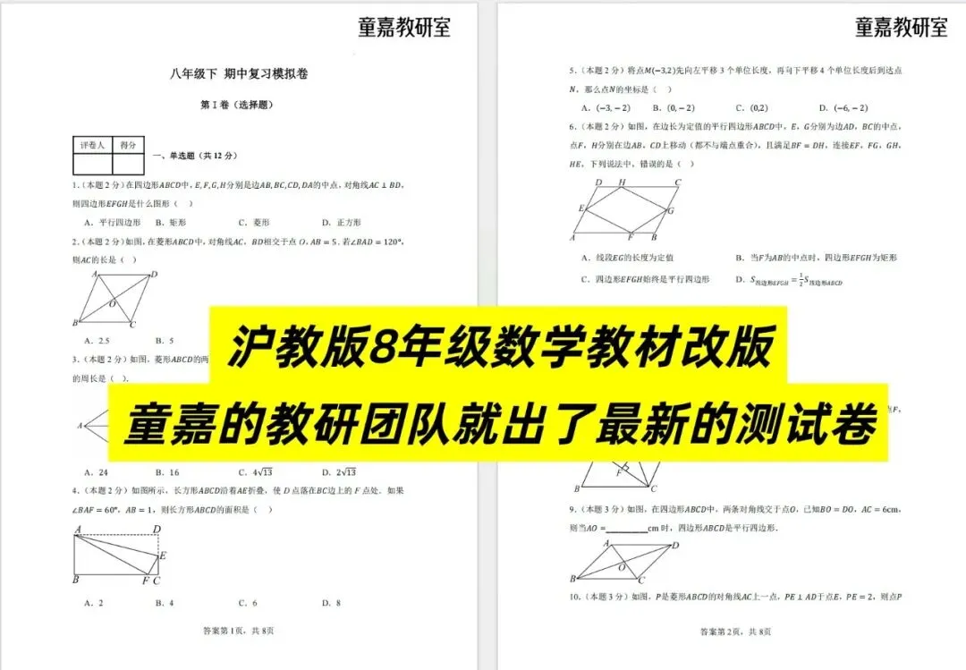 尤其是8年级数学刚刚改版,童嘉教研室的老师就出好了独家复习卷——