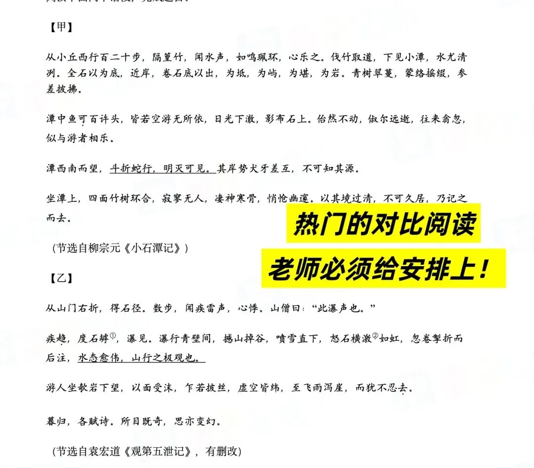 语文部分,也有真题测试卷给到,比如热门的对比阅读的内容,就考上了!尤其是对比课外的文言文内容,难度有,训练才能到位——