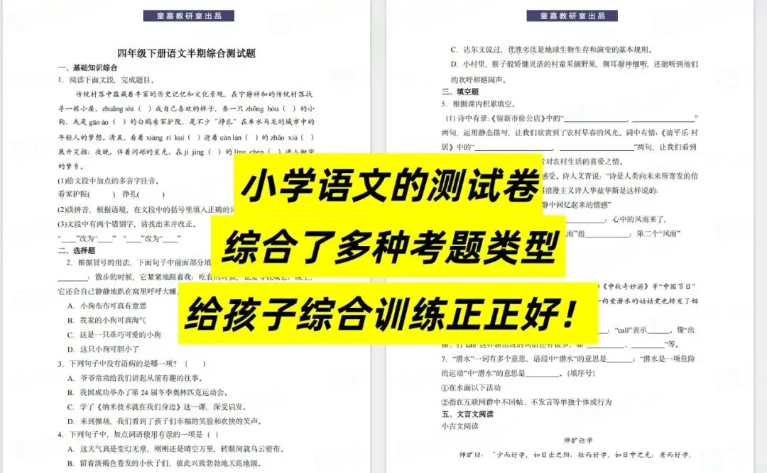小学的语文试卷综合了多种题型,考前练一套,手稳心细拿高分——