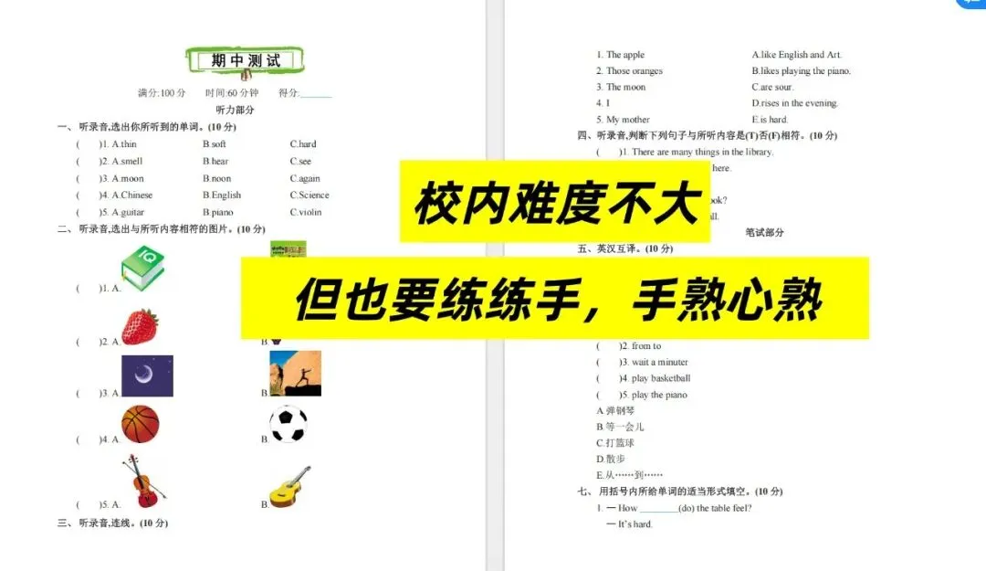 小学部分给到的是测试卷,校内的难度不是很高,给孩子参考练练手。