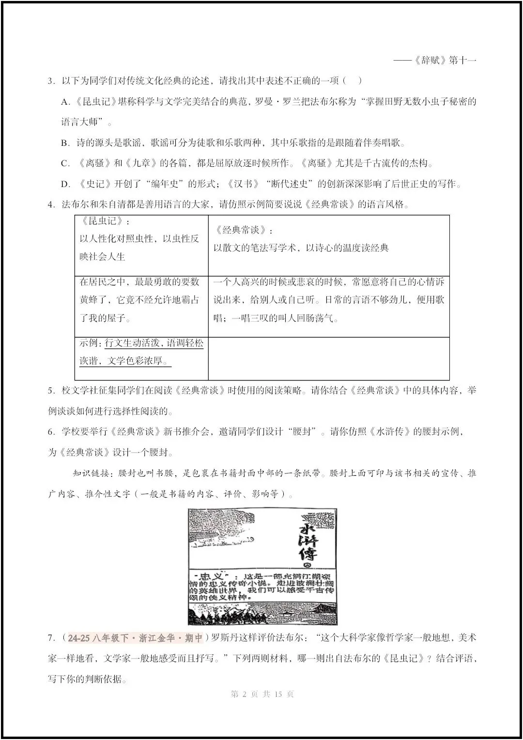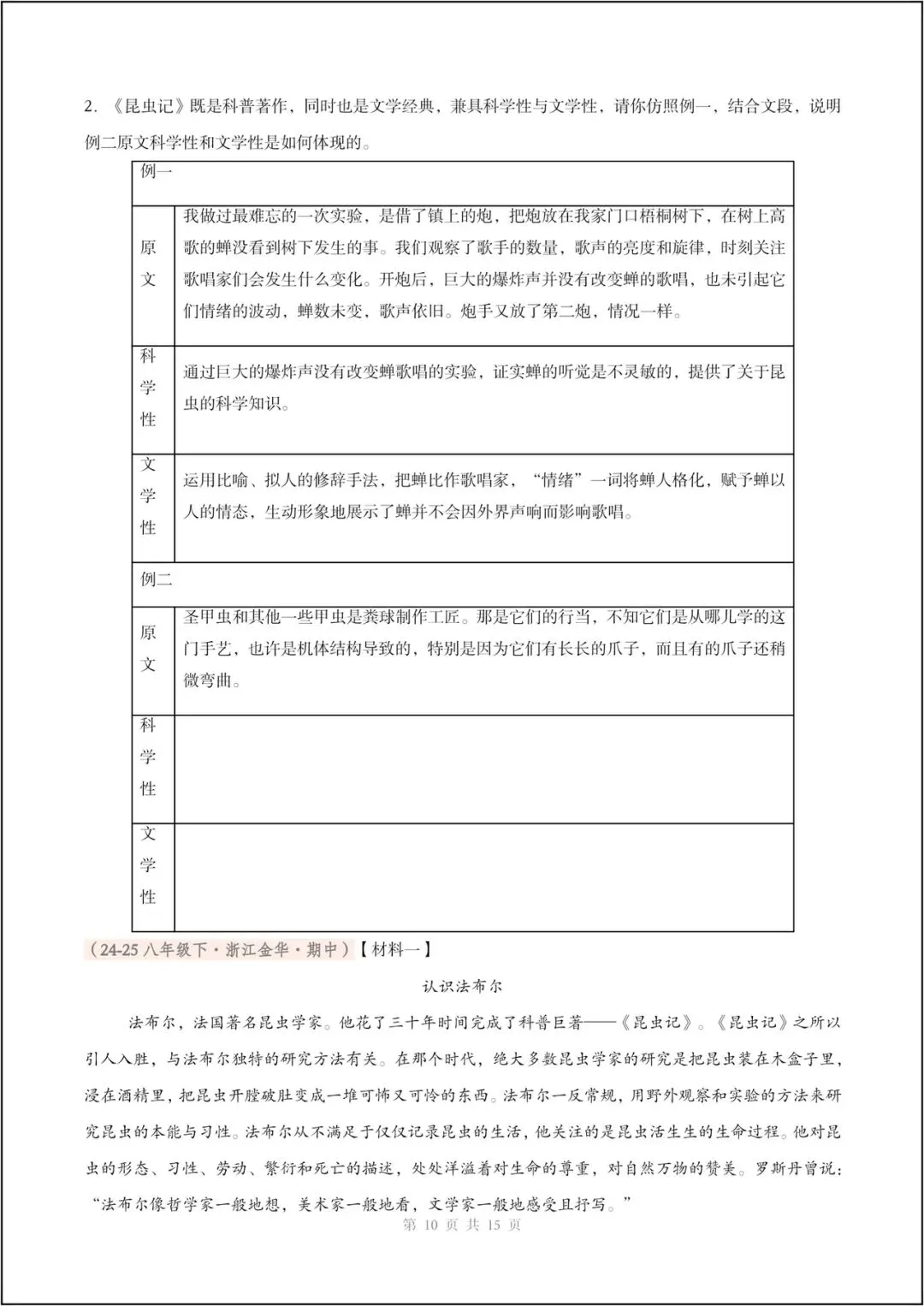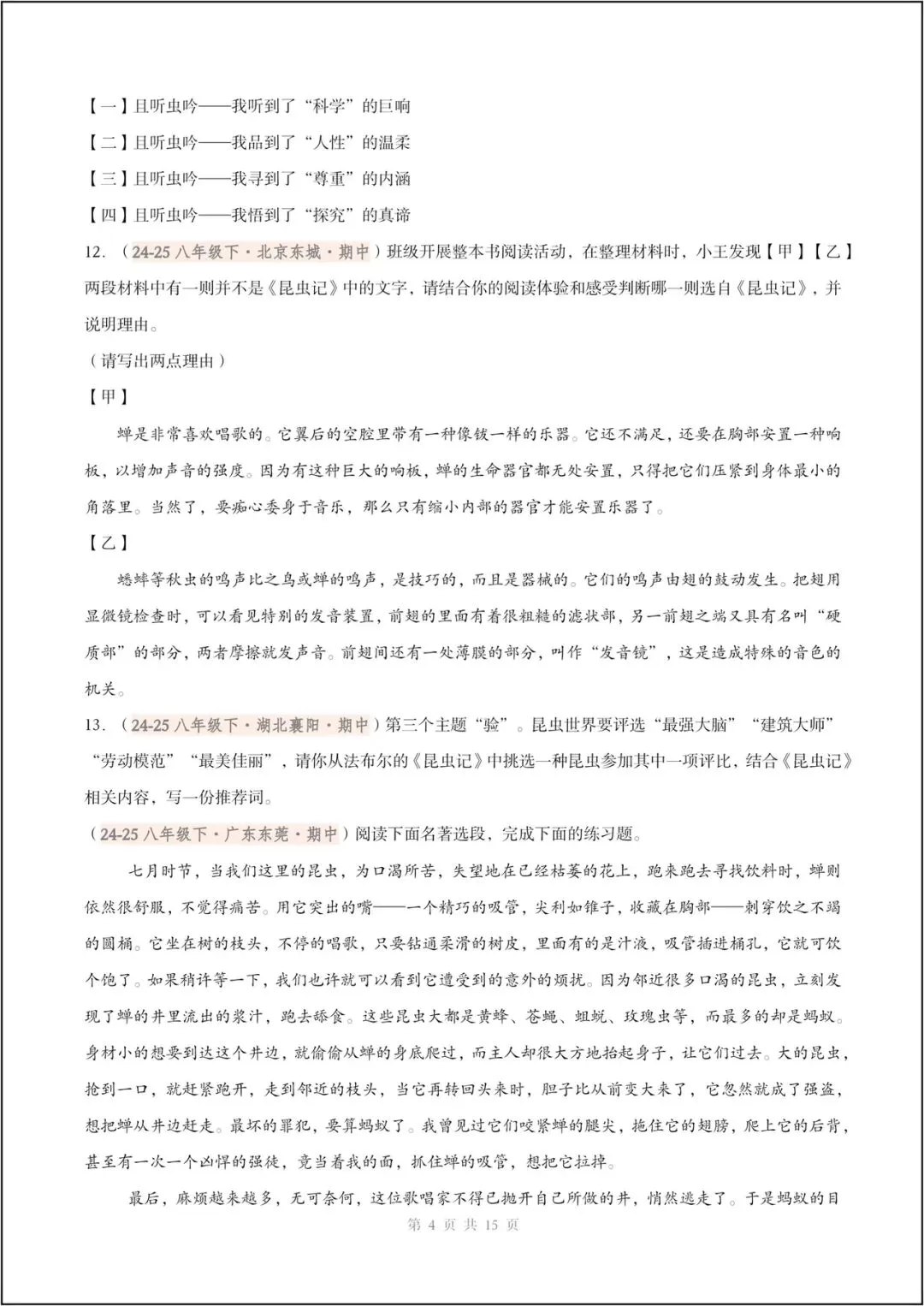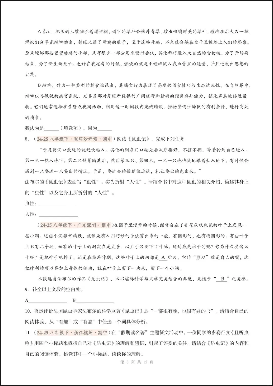期中复习资料|2026新人教版八年级下册语文 名著《昆虫记》(期中真题汇编)(考点梳理,熟记)附答案解析电子版可打印!